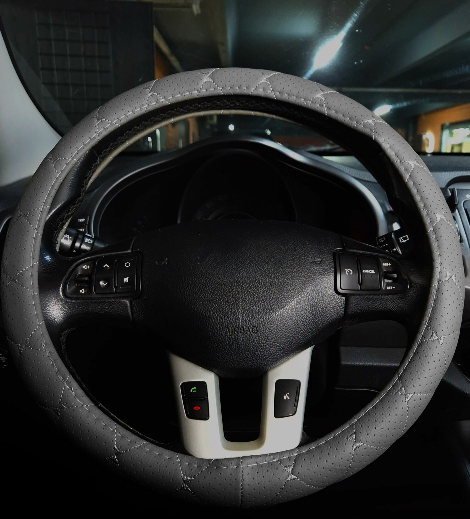 Оплетка на руль Top-12 SKYWAY M (37-39) серый экокожа, S01102501