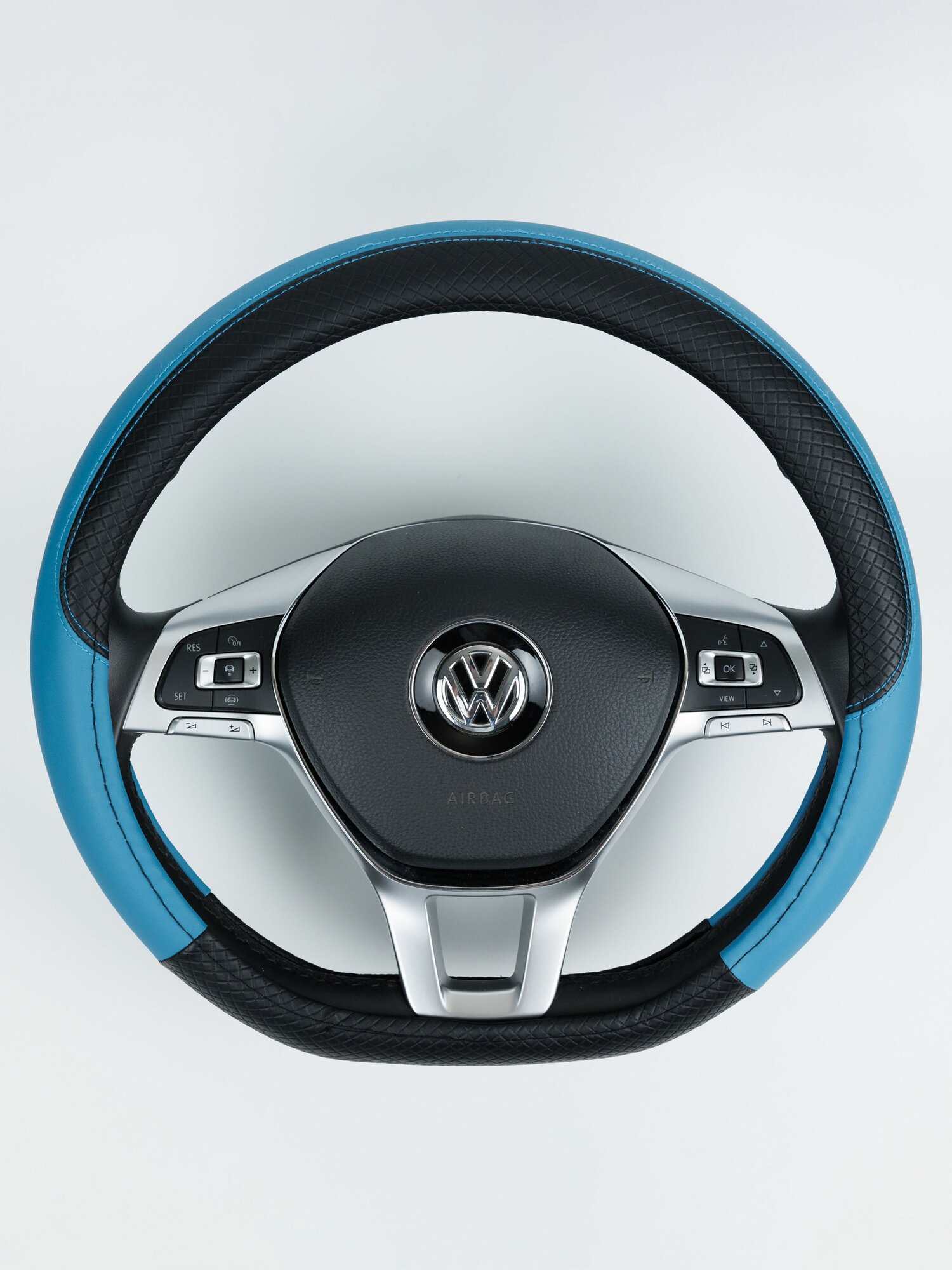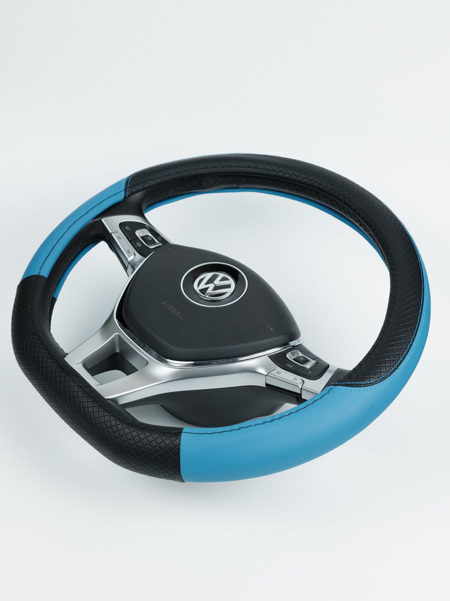 10 цен на Оплетка Changan CS95PLUS 2023 - н. в / Чехол на руль экокожа черный / голубой (D-образный)