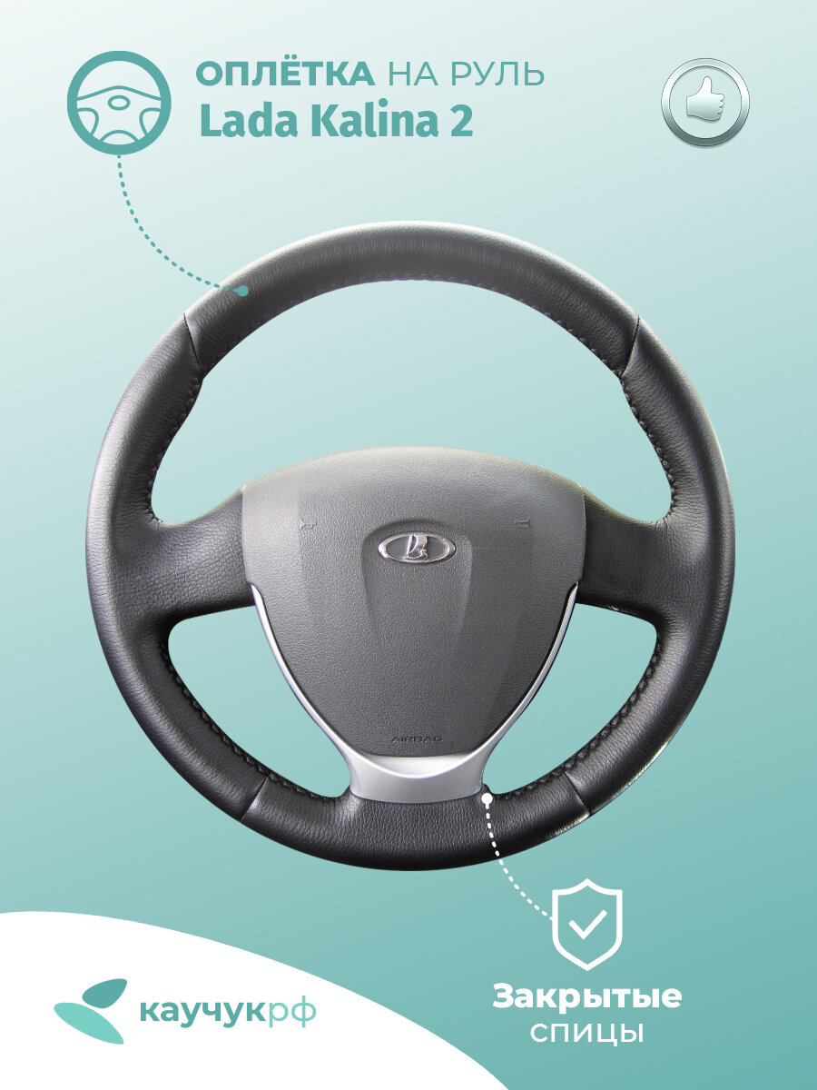 10 цен на Оплетка на руль "Lada Kalina 2" для резинового руля, черная кожа с черным швом.