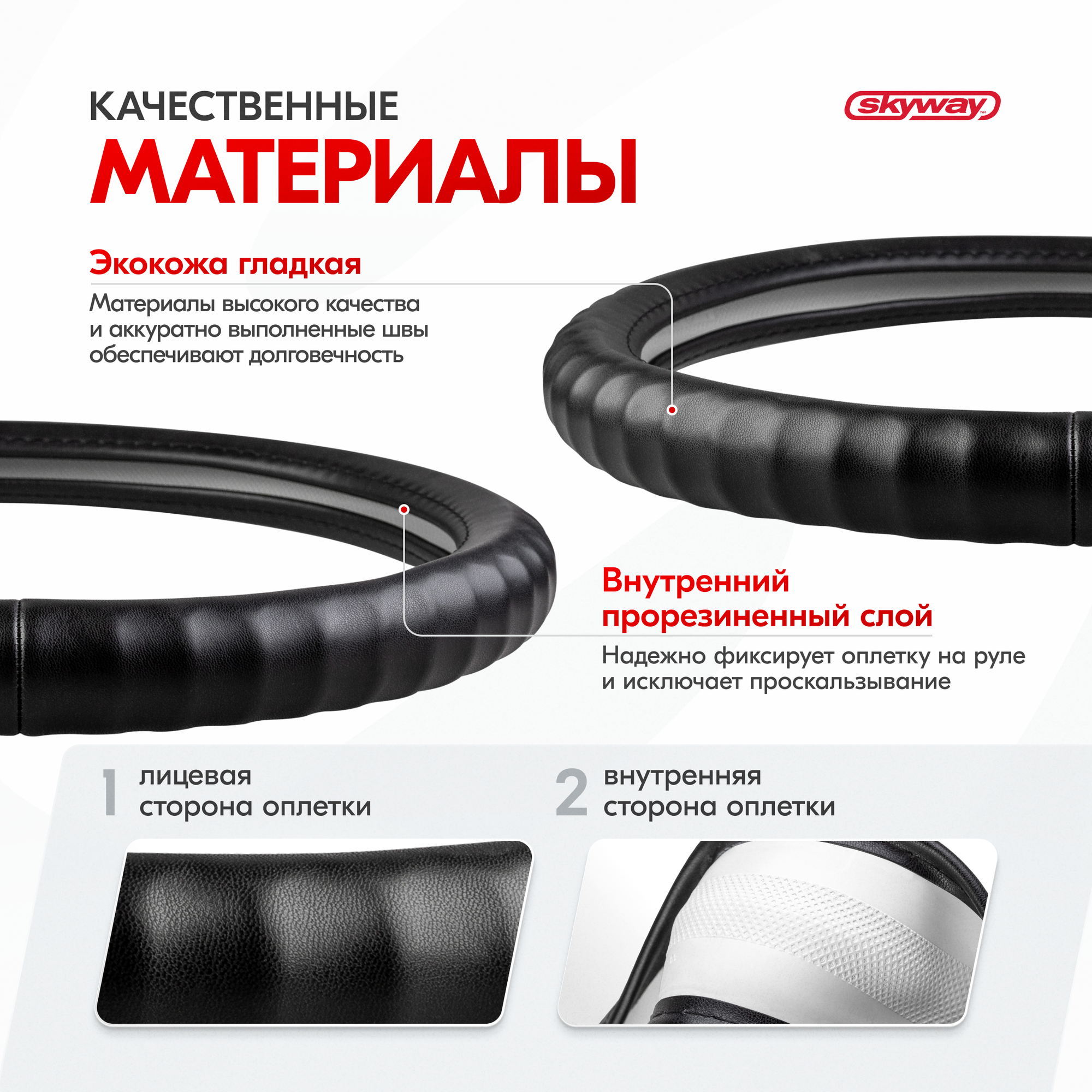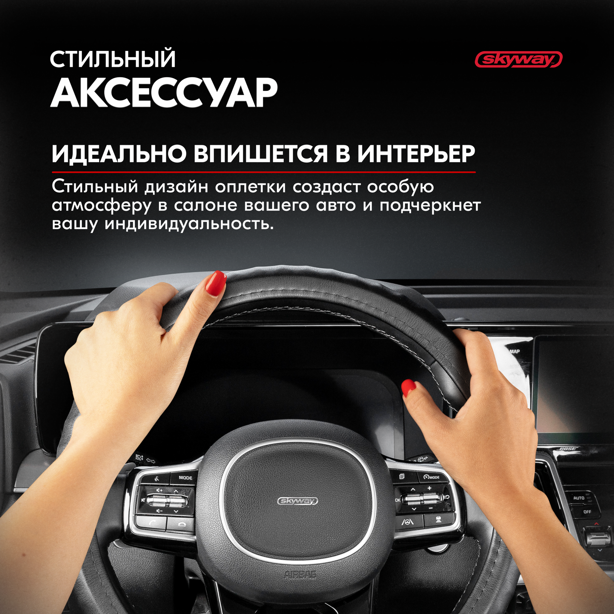 Оплетка на руль Top-12 SKYWAY M (37-39) черный экокожа, S01102500 информация: