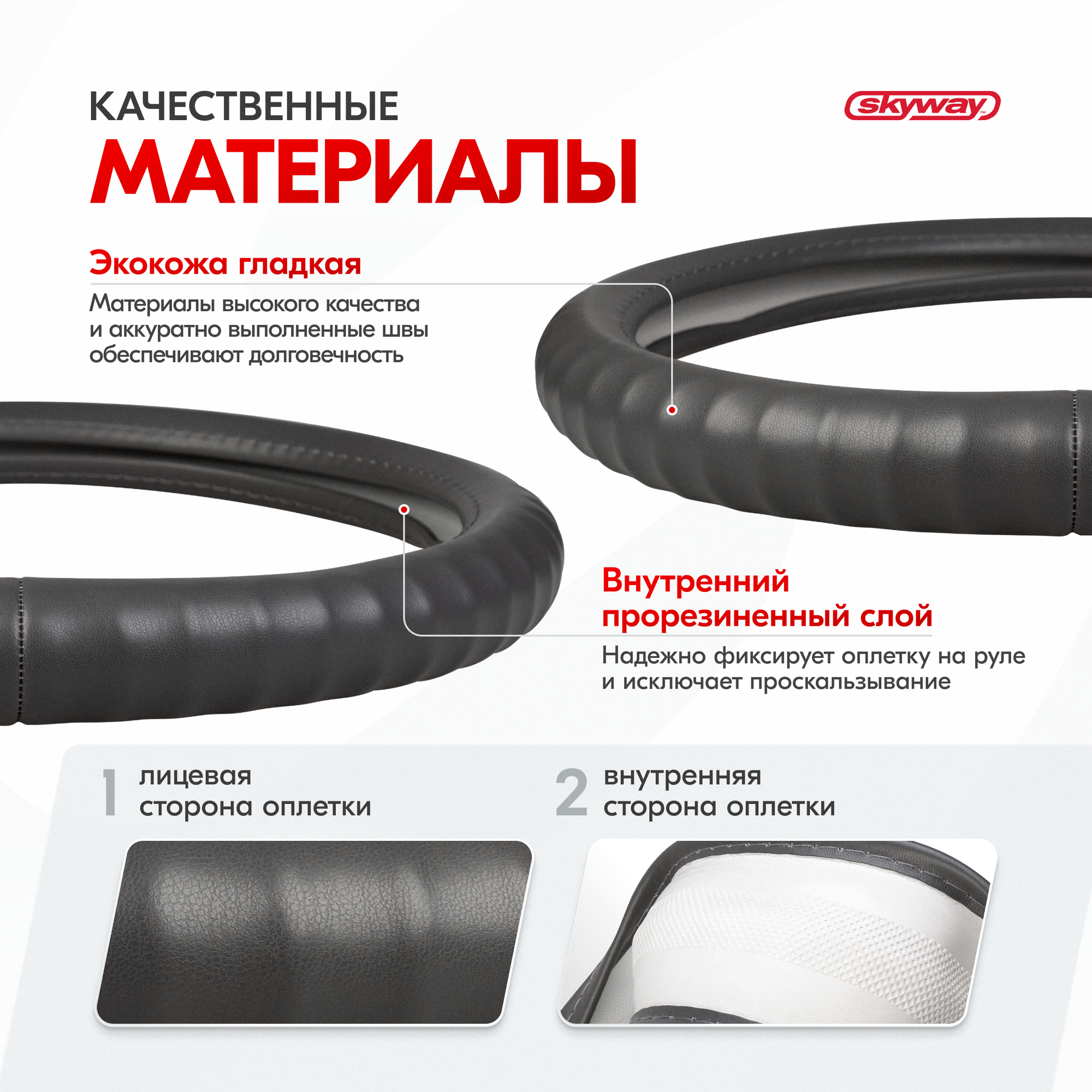 10 цен на Оплетка на руль Top-12 SKYWAY M (37-39) серый экокожа, S01102501
