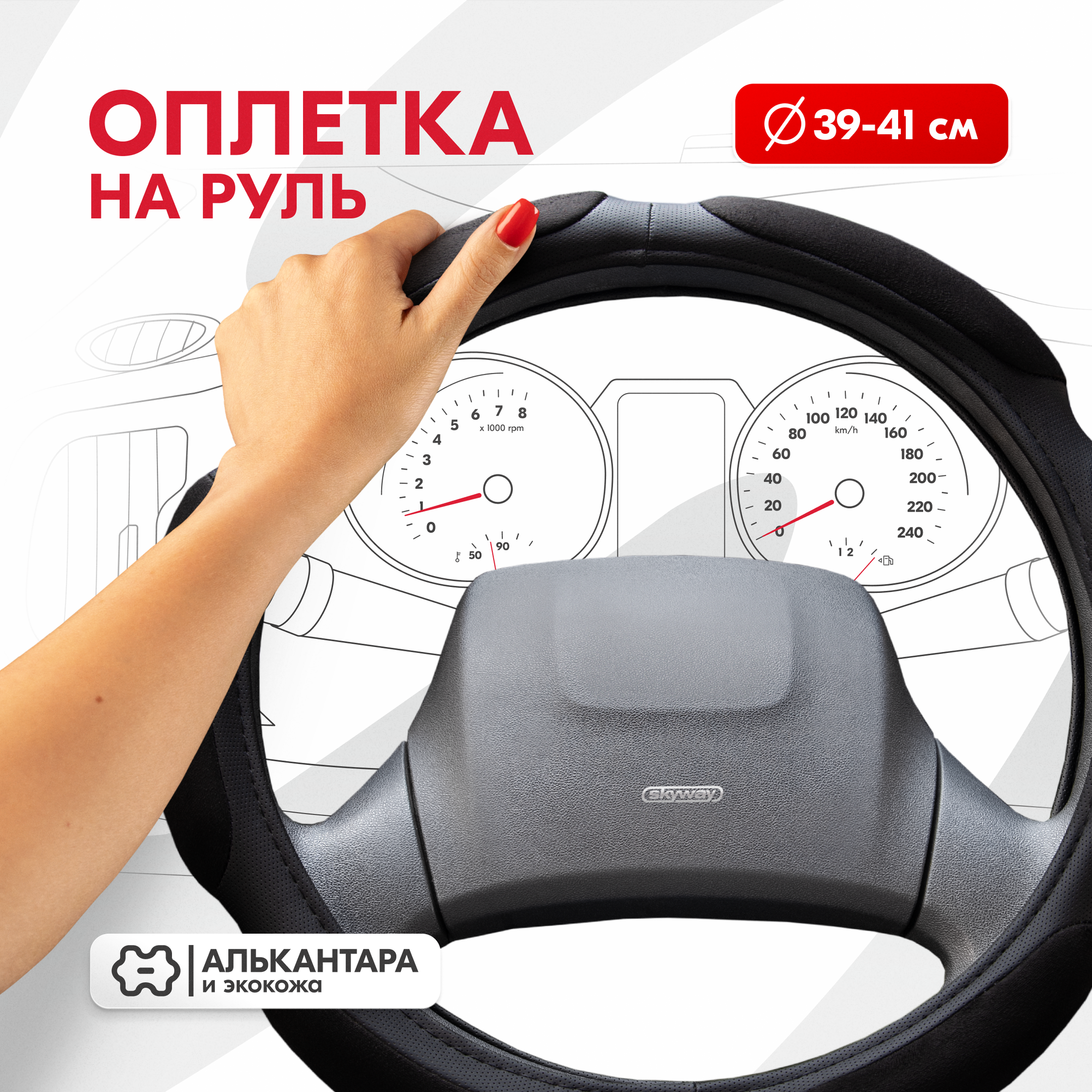 Оплетка на руль Sponge air SKYWAY L (39-41) красный алькантара 6 подушечек, S01101067