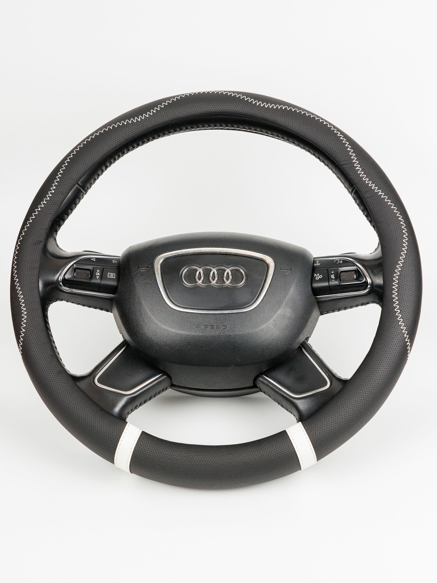 Оплетка (чехол) на руль 37-38 см каркасная Hyundai Tucson 2004 - 2009 экокожа, черная, белая вставка информация: