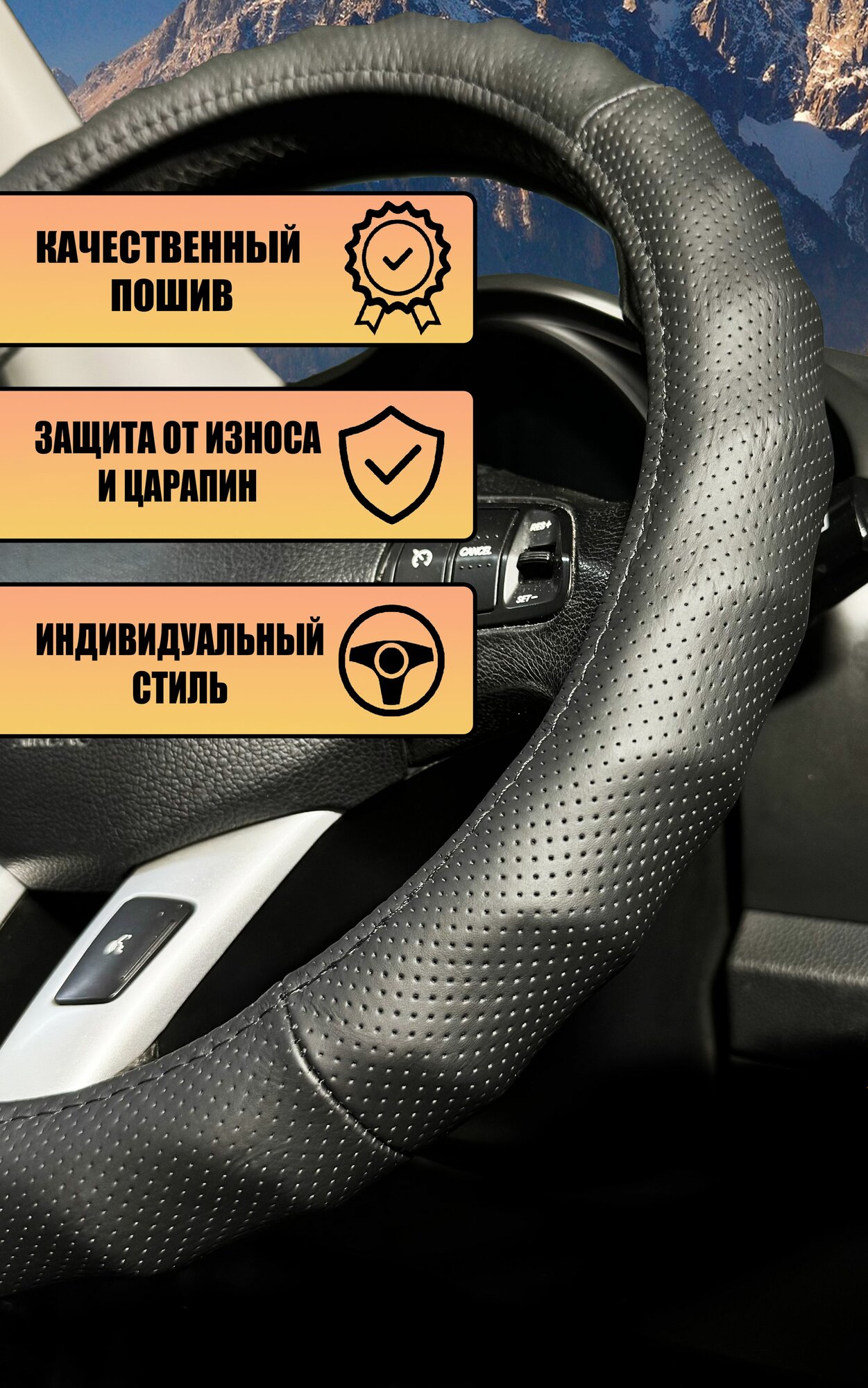 10 цен на Оплетка, чехол (накидка) чехол на руль Тойота Королла (2018 - 2024) седан / Toyota Corolla, Натуральная кожа, Черный