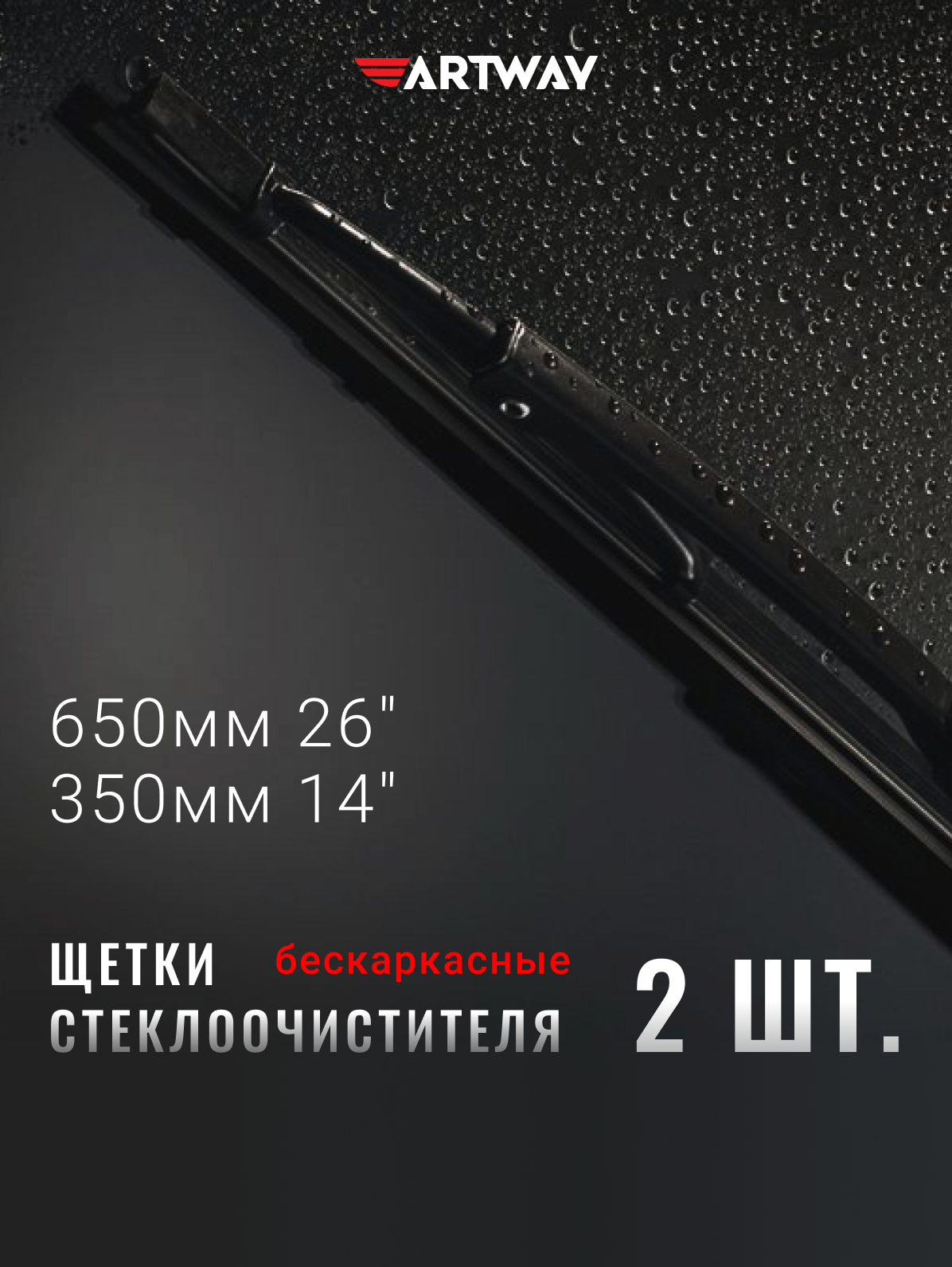 Щетки стеклоочистителя (дворники) бескаркасные ARTWAY 650 мм (26")+ 350мм (14"), комплект -2 шт. информация: