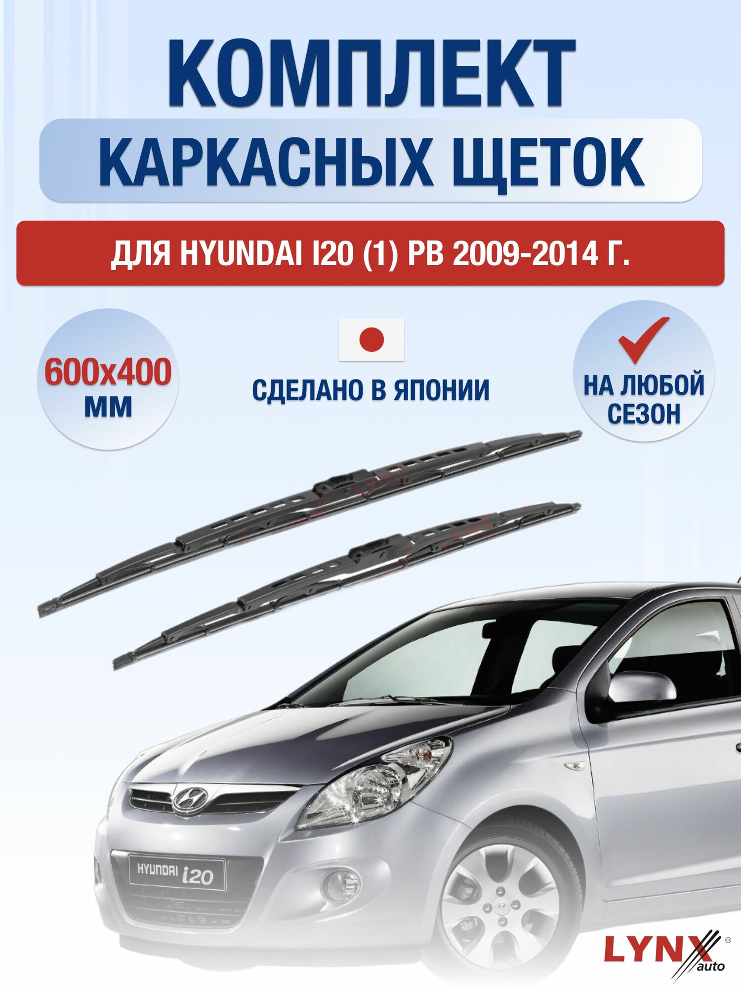 Щетки стеклоочистителя для Hyundai i20 (1) PB / 2009-2014 / Комплект каркасных дворников 60 40 см Хендай Ай20 информация: