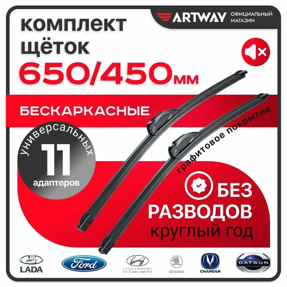 10 цен на Щетки (650-450мм) для KIA StingerCK, седан-2017, бескаркасные, Artway
