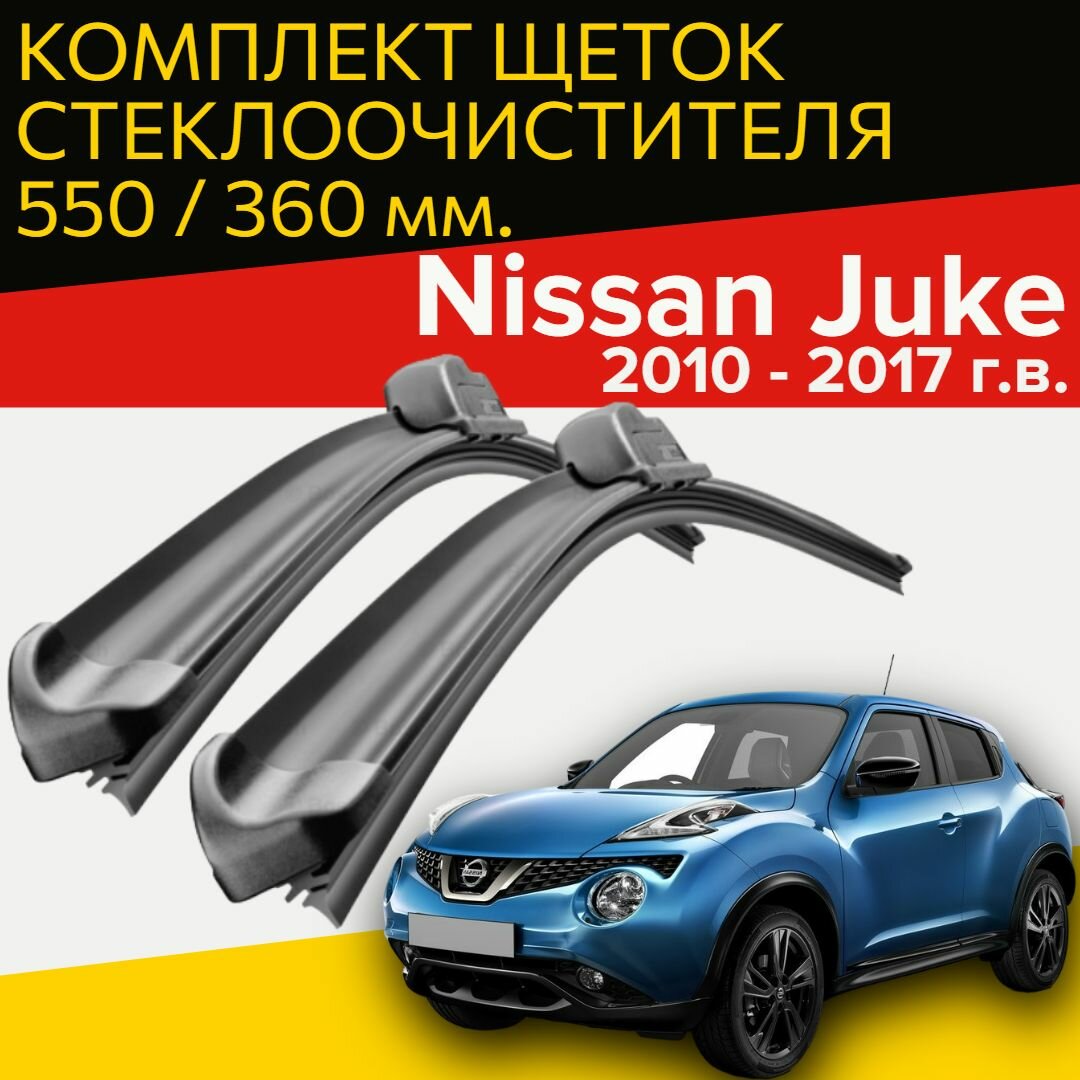 Щетки стеклоочистителя для Nissan Juke ( 2010 - 2017 г. в.) 550 и 360 мм / тип крепления крючок / Дворники для автомобиля ниссан жук информация: