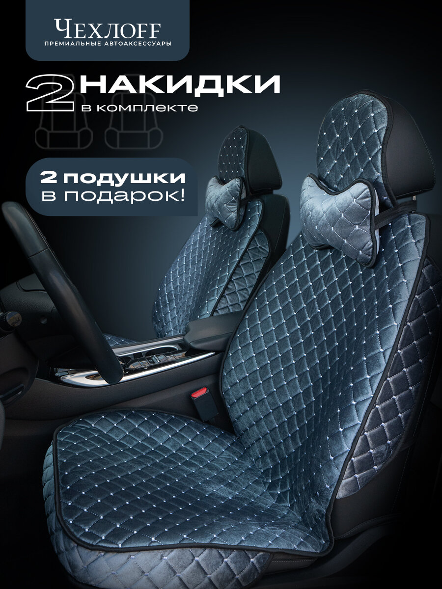 Чехлы на передние сиденья "Велюр", с подушками в подарок, синий, 2 шт 2 031 ₽