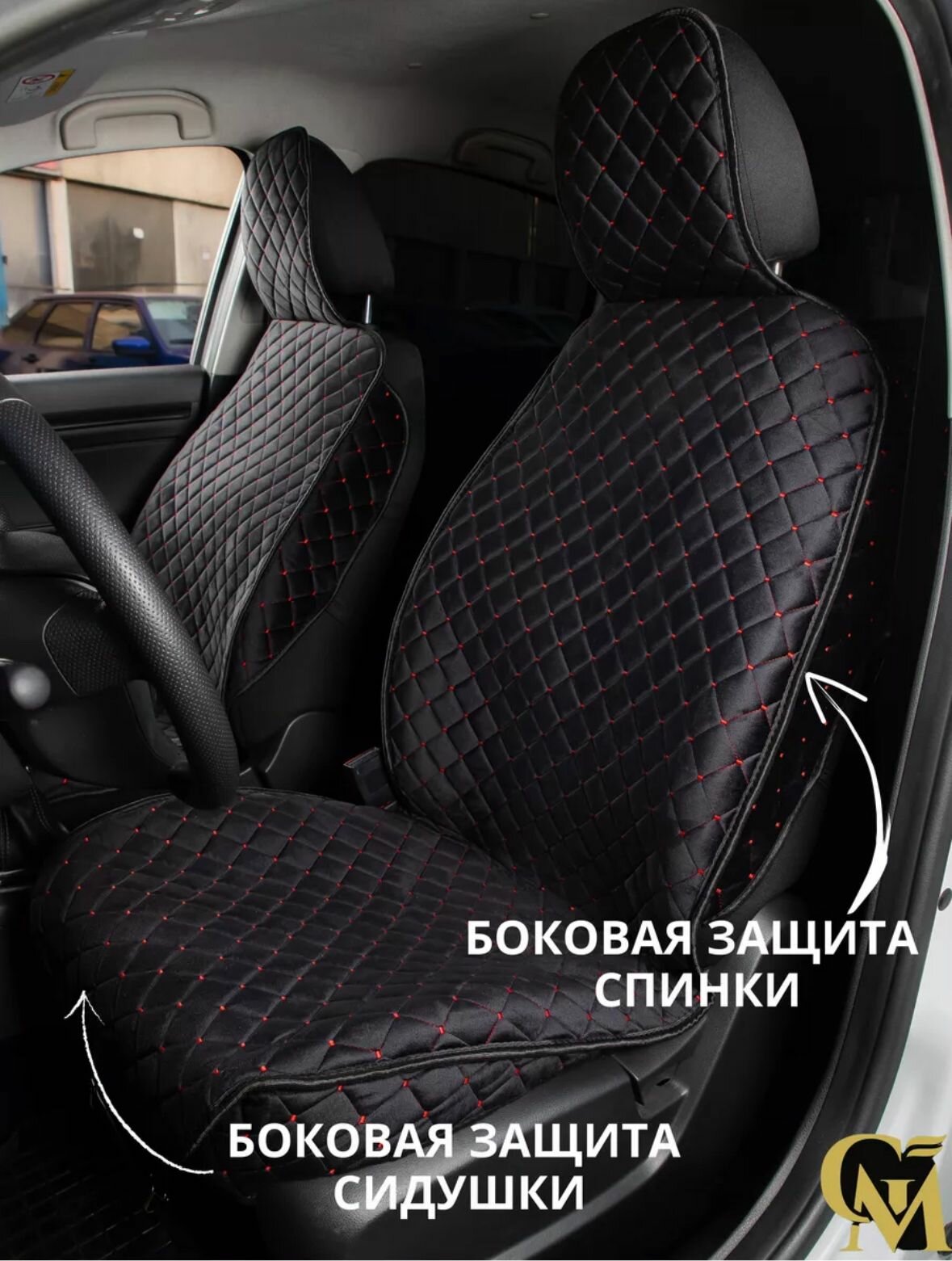 Отзывы на Чехлы накидки универсальные на авто ЭКО велюр передние черные/красный