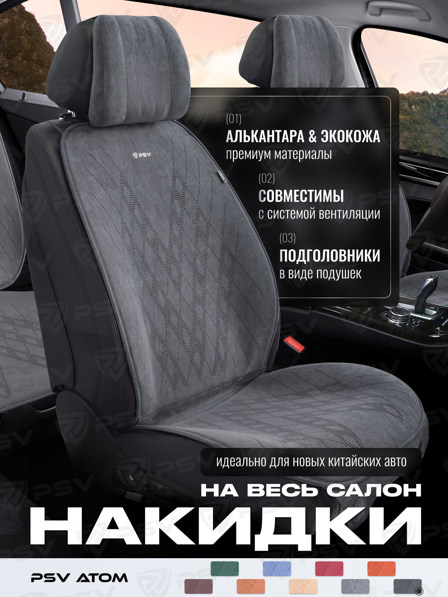 10 цен на Накидки чехлы на сиденья из алькантары в машину автомобильные универсальные на весь салон премиум PSV Atom (Т. серый)