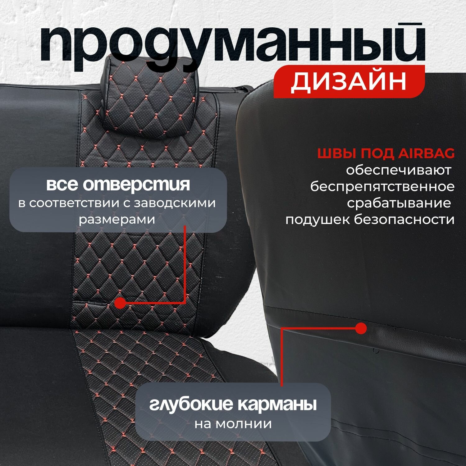 Чехлы для автомобильных сидений Лада Гранта / Lada Granta (2018-2023) Standard, Classik, Comfort, универсальная спинка заднего сидения. Экокожа. Авточехлы на весь салон информация: