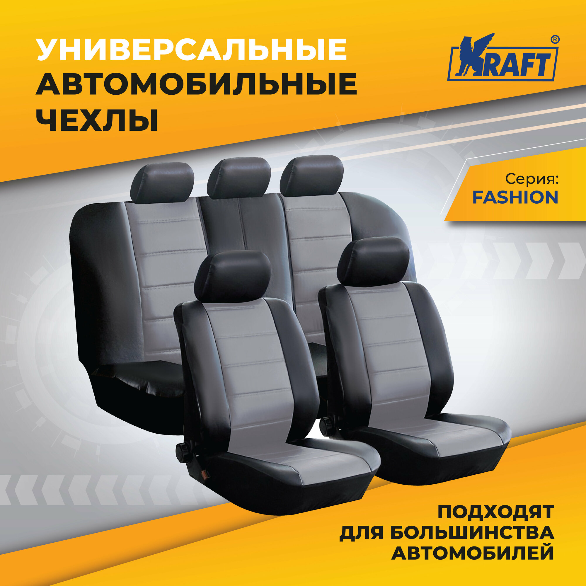 Чехлы универсальные на автомобильные сиденья, комплект "FASHION", экокожа, черно-серые информация: