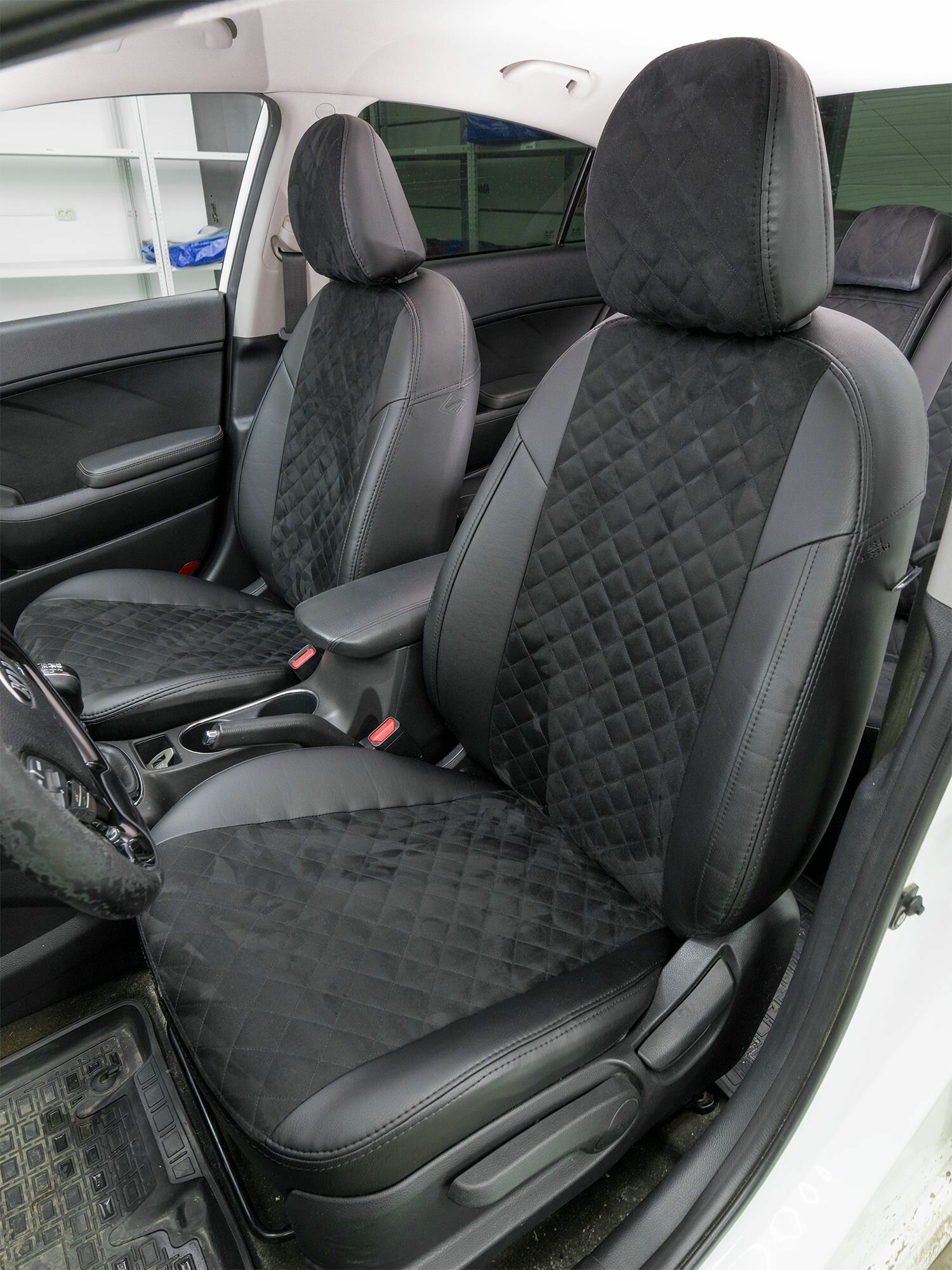 Комплект чехлов Автопилот Алькантара ромб KIA Cerato III Sd (classic) с 13-20г. Черный + Черный