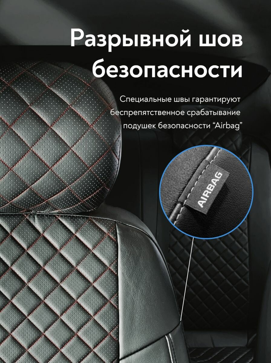 Отзывы на Чехлы на сидения для Мазда 3 (Mazda III) с 2004 - 2010 г. в. (спинка заднего сидения 40/60, раздельная) из экокожи, ромб, черные с красной строчкой