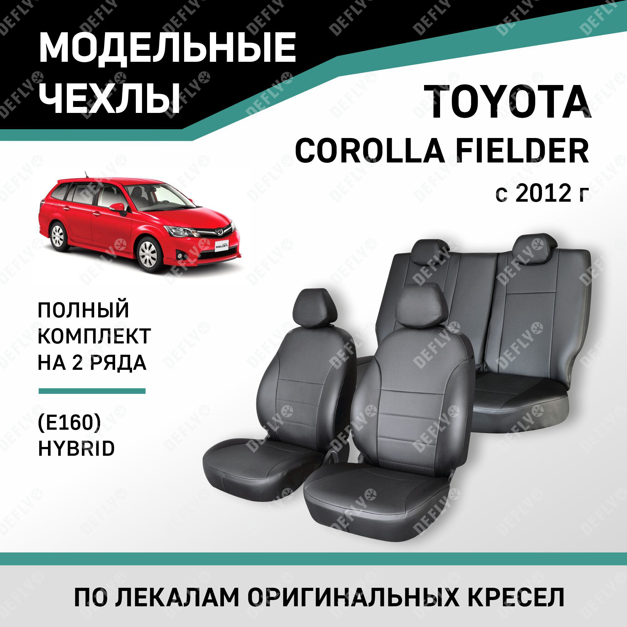 Модельные чехлы на сиденья Defly Toyota Corolla Fielder 2012-н. в. Экокожа Черный Hybrid информация: