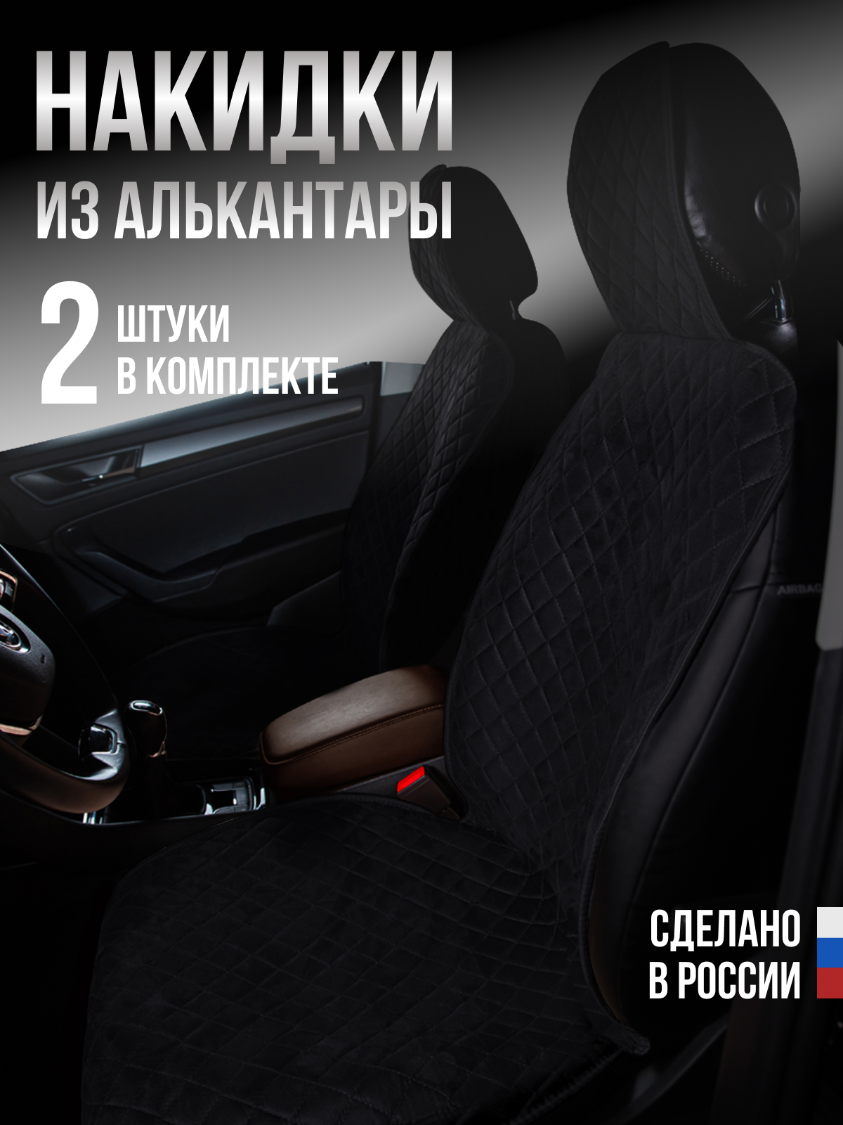 Накидка "Алькантара" 2шт. на переднее сиденье, стандарт лайт Чёрная с чёрной нитью для Ауди А1 8X (Audi A1 8X) информация: