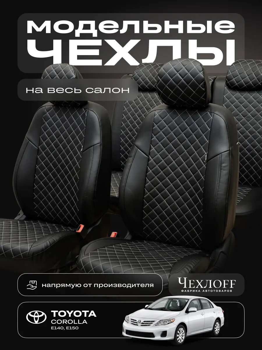 10 цен на Чехлы ЧехлоFF для Toyota Corolla E140/E150, экокожа, чёрно-белые, передние/задние, комплект