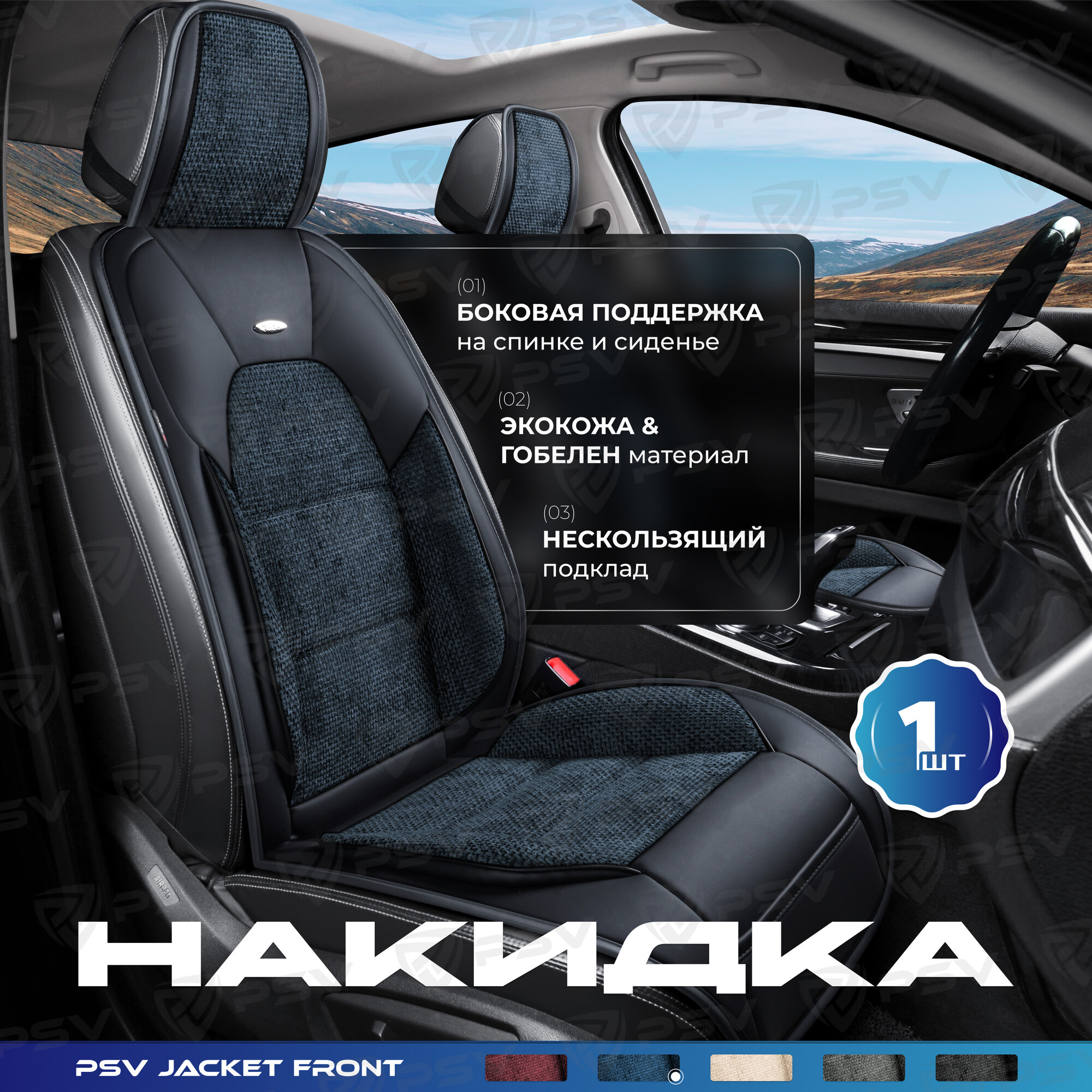 Отзывы на Накидка на сиденье универсальная PSV Jacket FRONT (Черно-Синий), на переднее сиденье, 1 штука