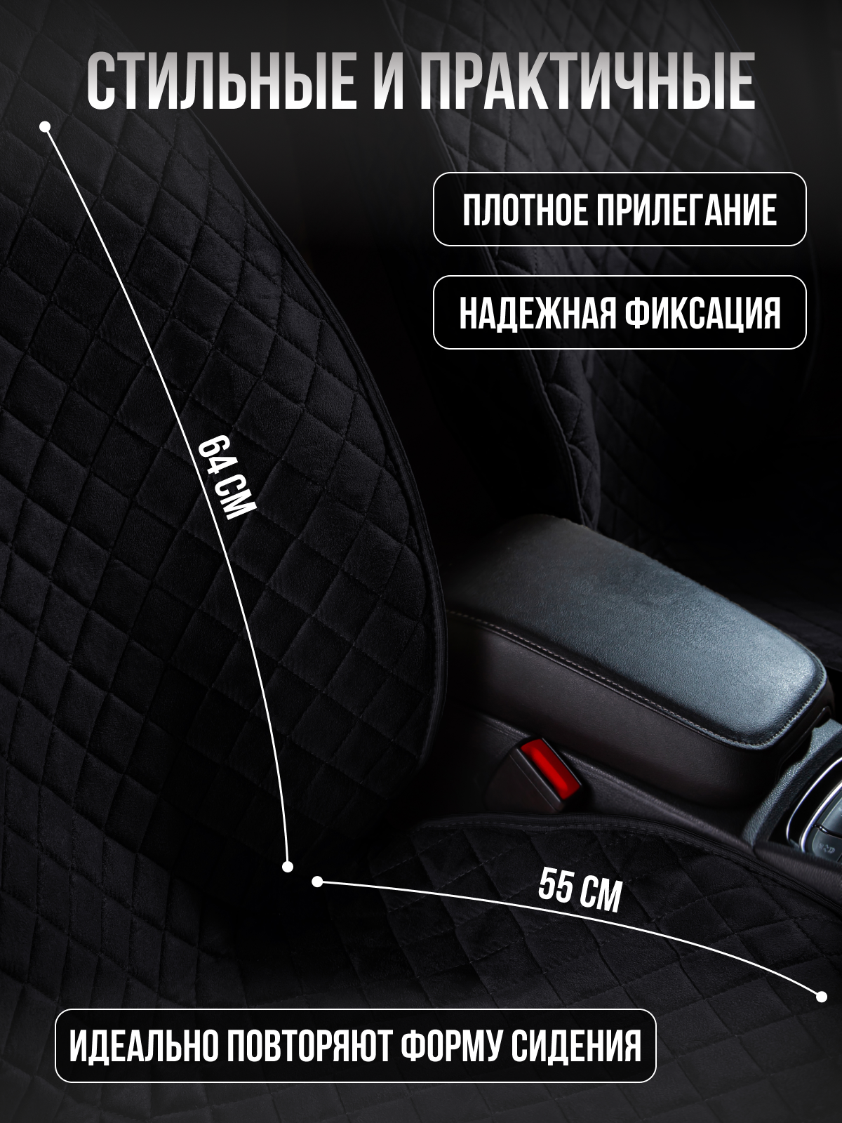 Накидка "Алькантара" 2шт. на переднее сиденье, стандарт лайт Чёрная с чёрной нитью для Volvo C30 информация:
