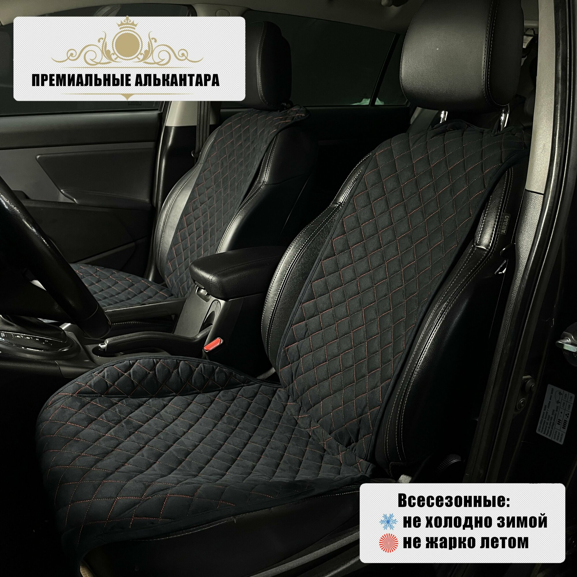 Накидки для Киа Рио / Kia Rio хэтчбек III (2011-2017) на передние сиденья RS, Алькантара, Черный