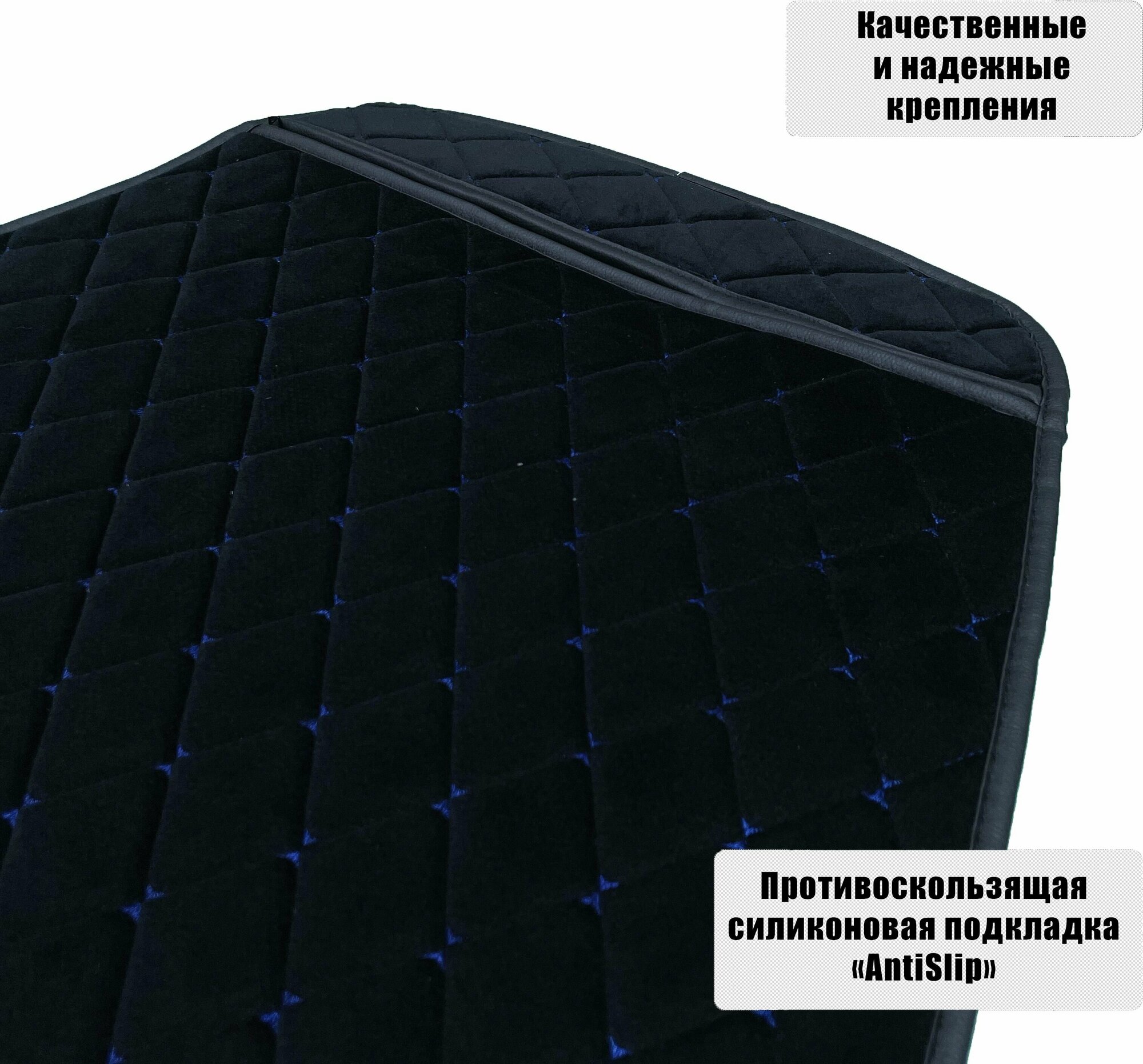 Накидки для Audi A5/S5 Sportback лифтбек (2007-2017) / Ауди А5/С5 Спортбэк на передние сиденья Maximal Ромб, Алькантара, Черный с синей строчкой информация: