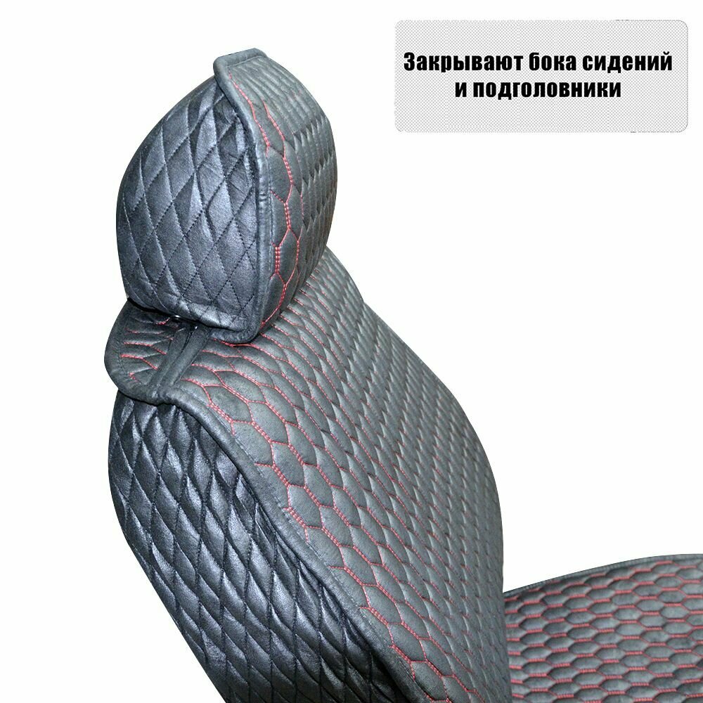 Накидки-чехлы для Опель Астра (2019 - 2021) хэтчбек 5 дверей / Opel Astra на передние сиденья Luxe MK, Экокожа, Черный с красной строчкой. информация: