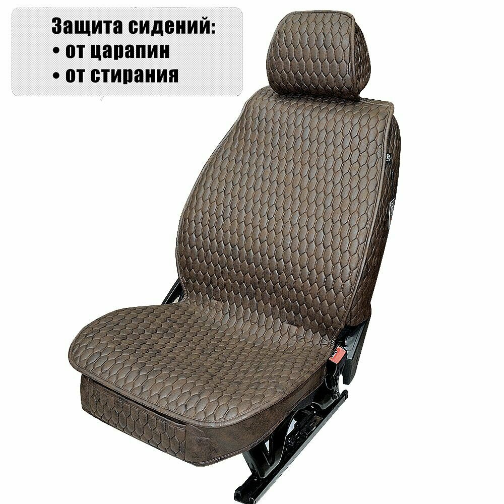 10 цен на Накидки-чехлы для Опель Астра (2019 - 2021) хэтчбек 5 дверей / Opel Astra на передние сиденья Luxe MK, Экокожа, Шоколадный.