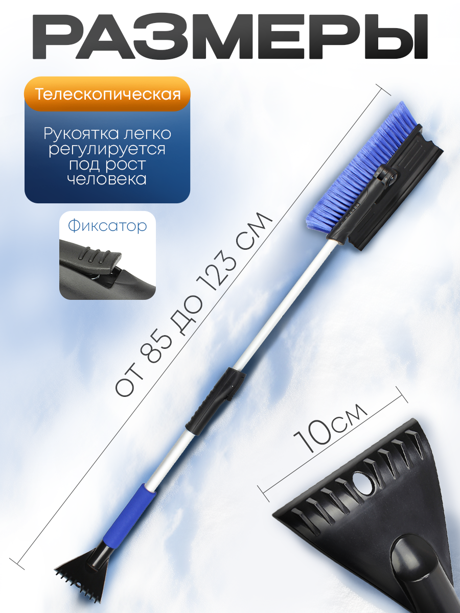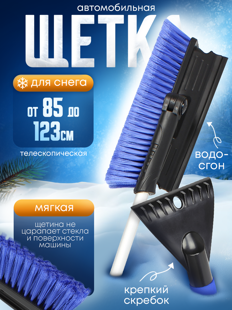 Отзывы на Щетка автомобильная для снега и пыли телескопическая со скребком и водосгоном 85-123см