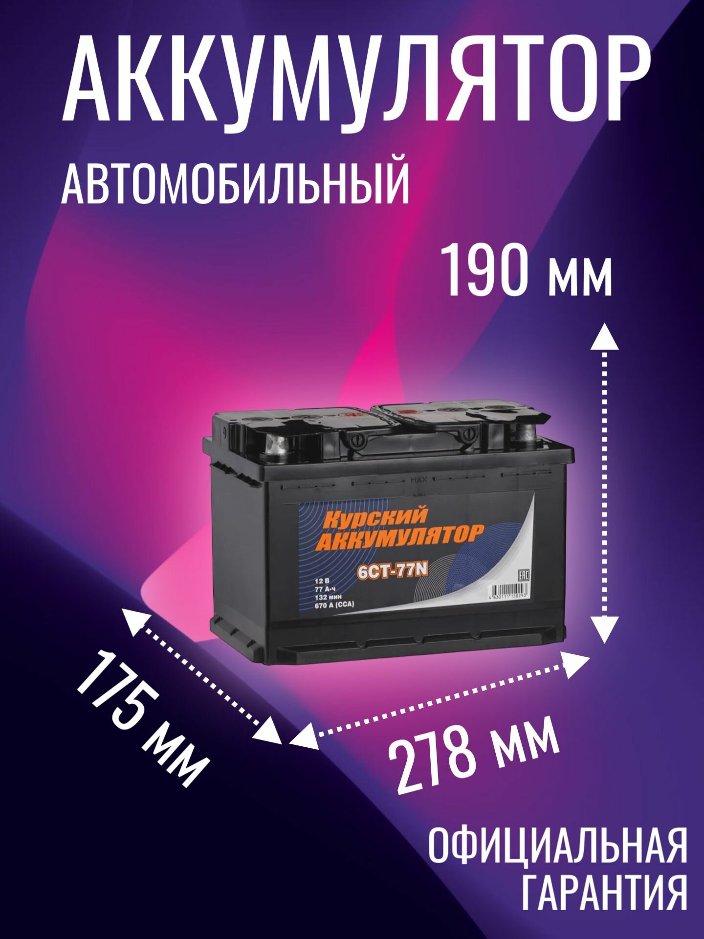 Аккумулятор автомобильный Курский Аккумулятор 6СТ-77N 12В 77Ач 670А информация: