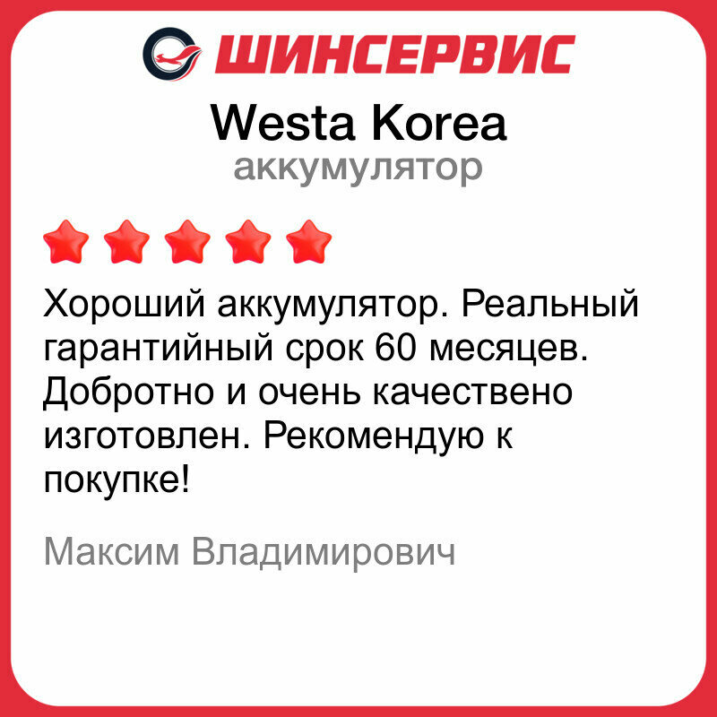 Отзывы на Автомобильный аккумулятор Westa (korea) 75b24l smf 60 Ач 550 А обратная полярность 220x127x237 мм