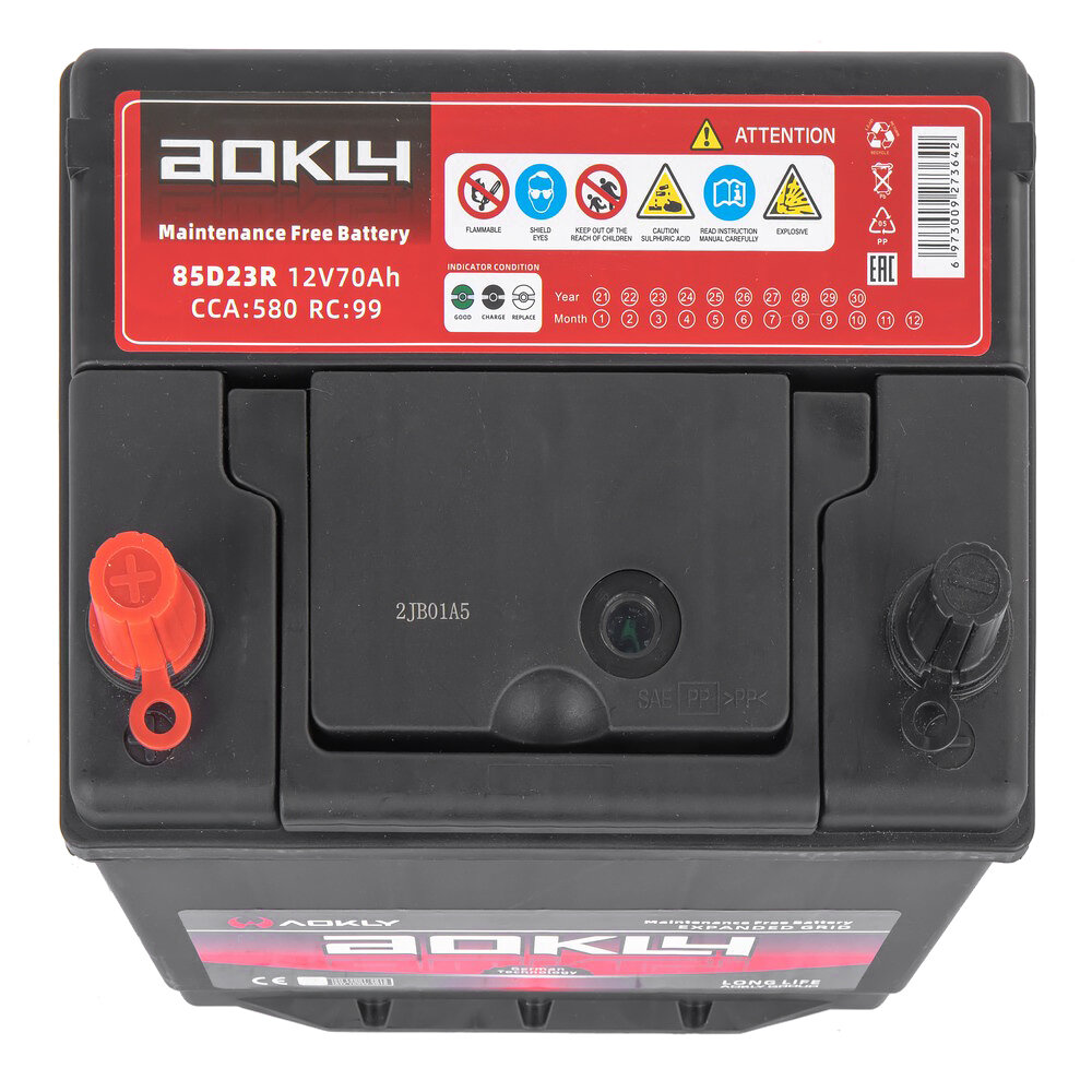 Автомобильный аккумулятор AOKLY ASIA 85D23R 70 А. ч 580А п. п. (230x175x225) информация: