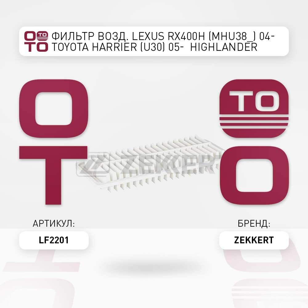 Фильтр возд. Lexus ( Лексус ) RX400h (MHU38 ) 04- Toyota ( Тойота Тоёта Таёта ) Harrier ( Харриер ) (U30) 05- Highlander ( Хайлендер ) (U20) 05- \ Zekkert LF2201, LF2201, LF-2201