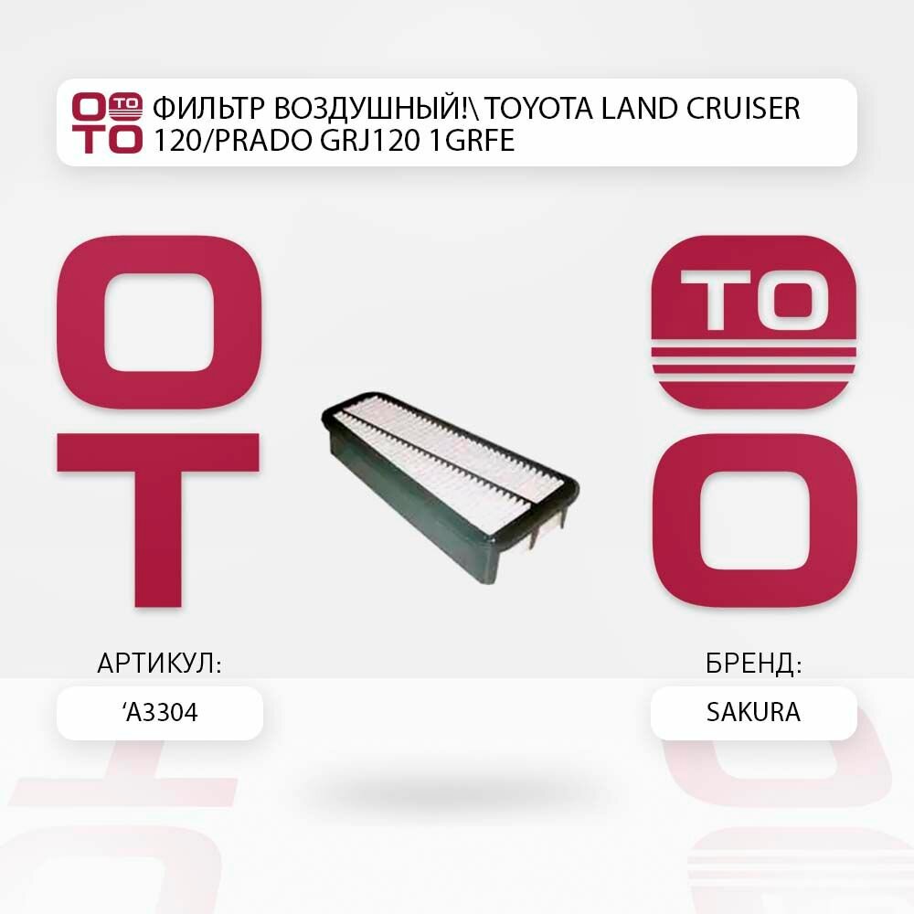 Фильтр воздушный toyota ( тойота ) land cruiser ( ленд крузер ) 120/prado grj120 1grfe \ Sakura A3304, A3304, A3304 информация: