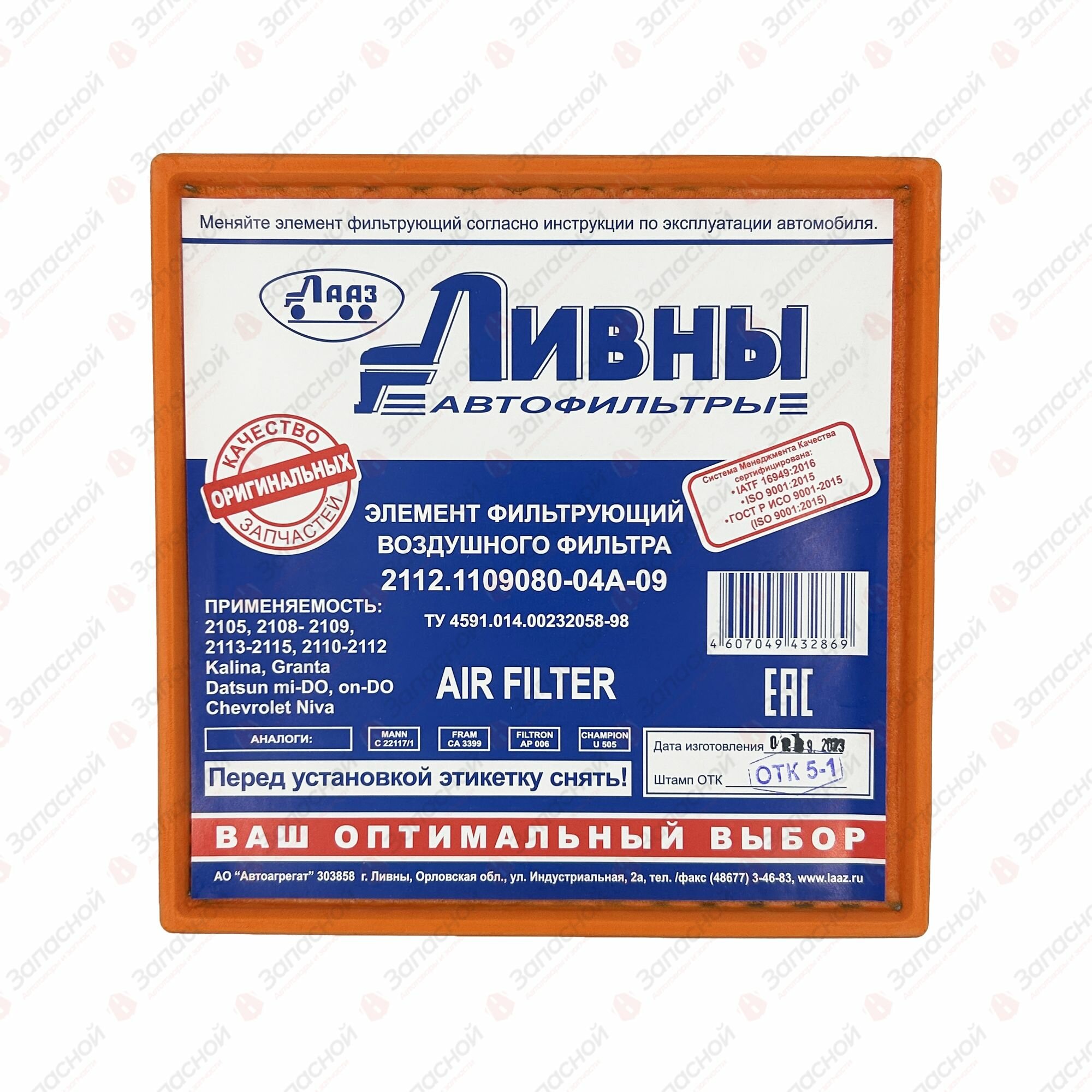 Фильтр воздушный для а/м Lada 2105-2115, Kalina, Priora - Ливны арт. 2112-1109080-04-A-09 информация: