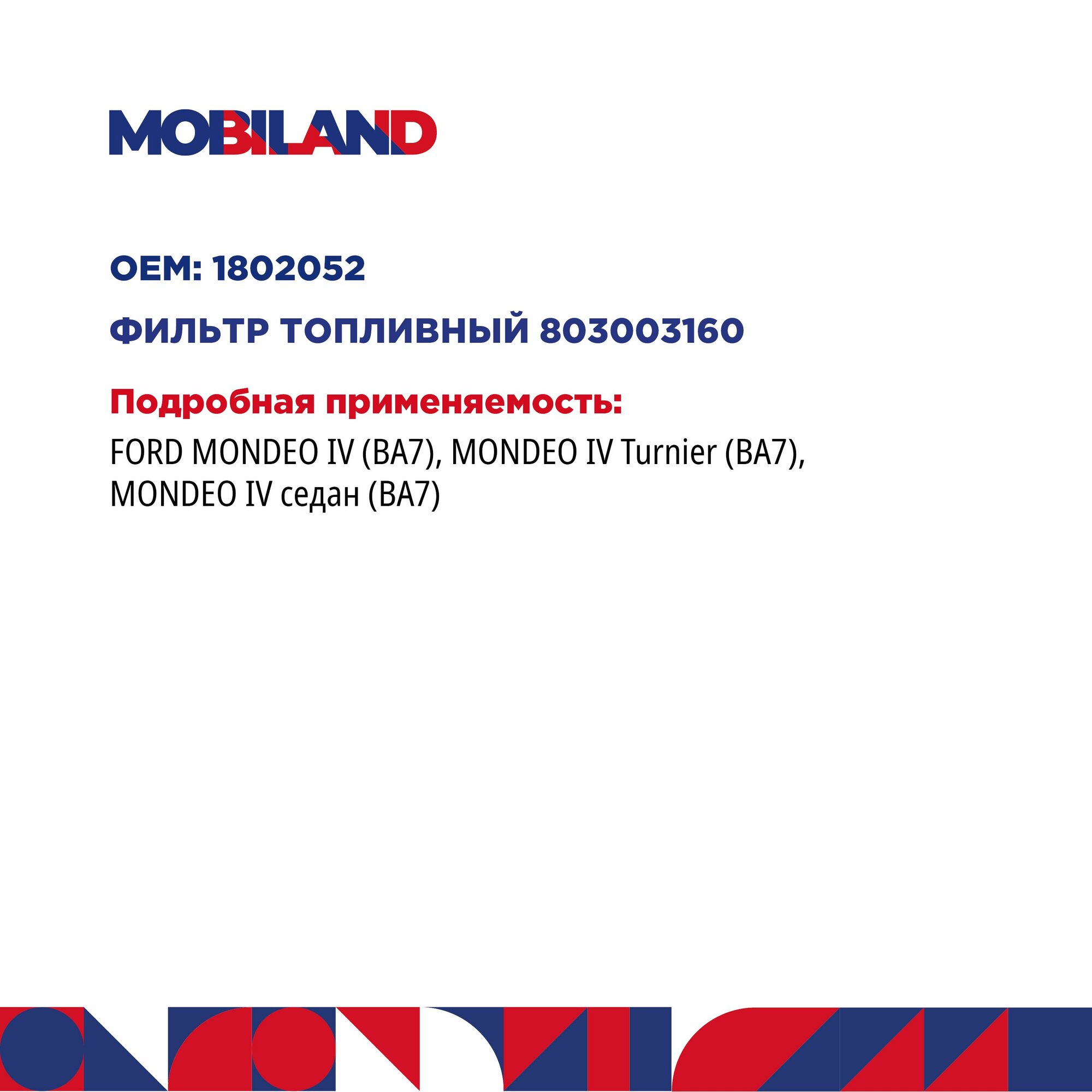 Фильтр топливный Mobiland 803002900 Toyota Corolla