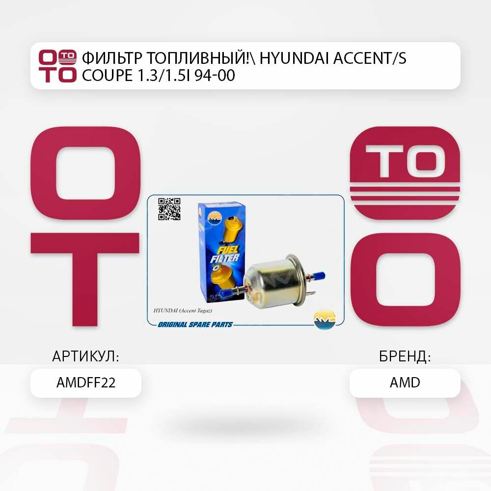 Отзывы на Фильтр топливный hyundai ( хендай ) accent/s coupe ( купе ) 1.3/1.5i 94-00 \ AMD AMDFF22, AMDFF22, AMD. FF22