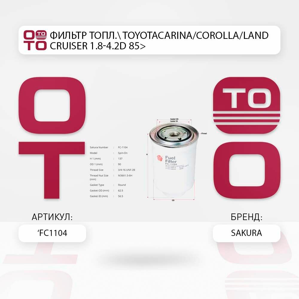 Отзывы на Фильтр топл. toyotacarina/corolla/land cruiser 1.8-4.2d 85> \ Sakura FC1104, FC1104, FC1104