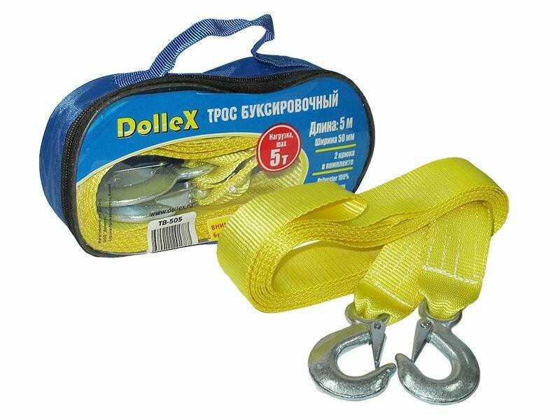 Трос буксировочный Dollex TB-050, 5т 2 крюка, длина 5м, ширина 50мм, разрывная нагрузка 2000кгс для Nissan Pathfinder информация: