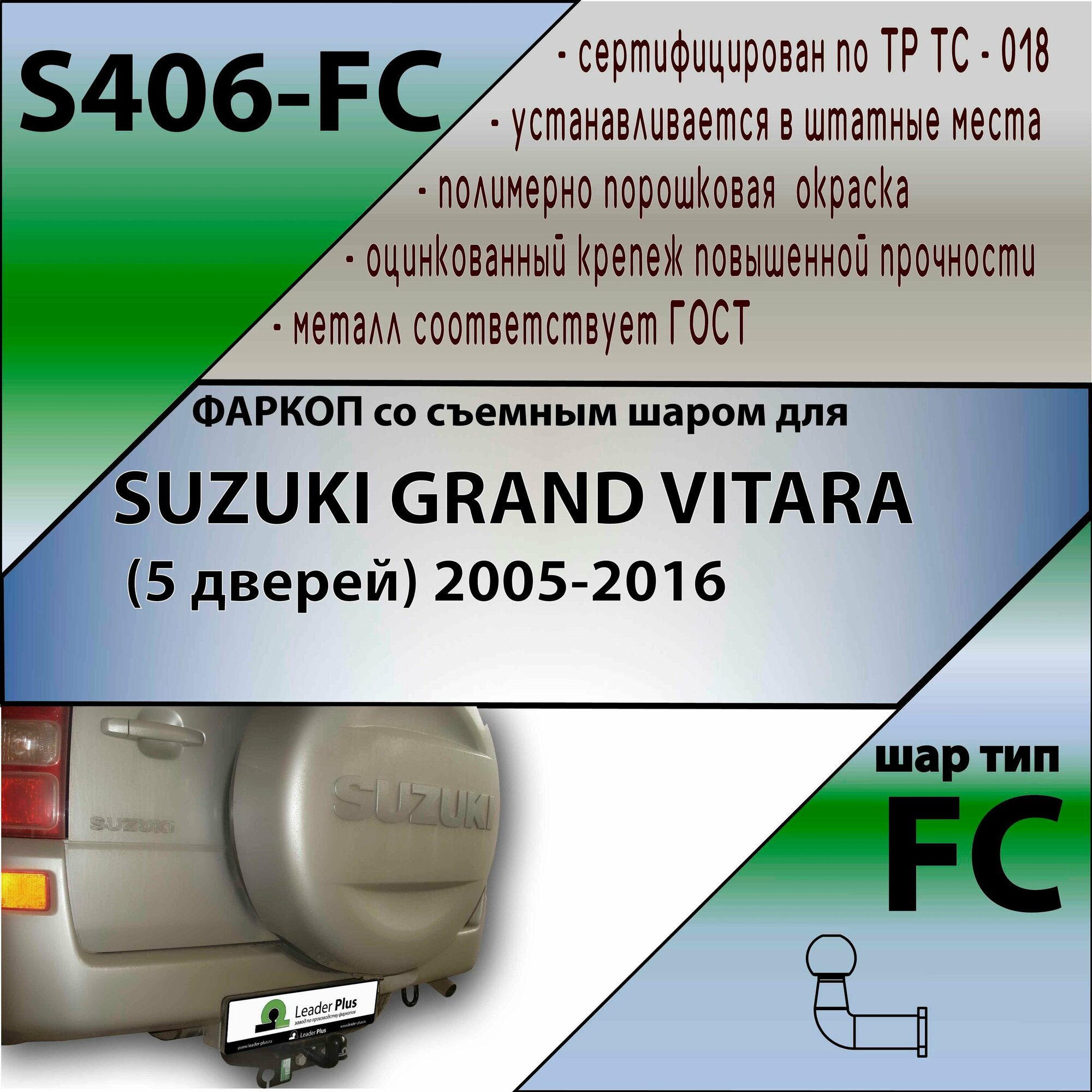 Фаркоп S406-FC Лидер плюс для SUZUKI GRAND VITARA (JB420, JB424W) (5 дверей) 2005-2015 (без электрики) информация: