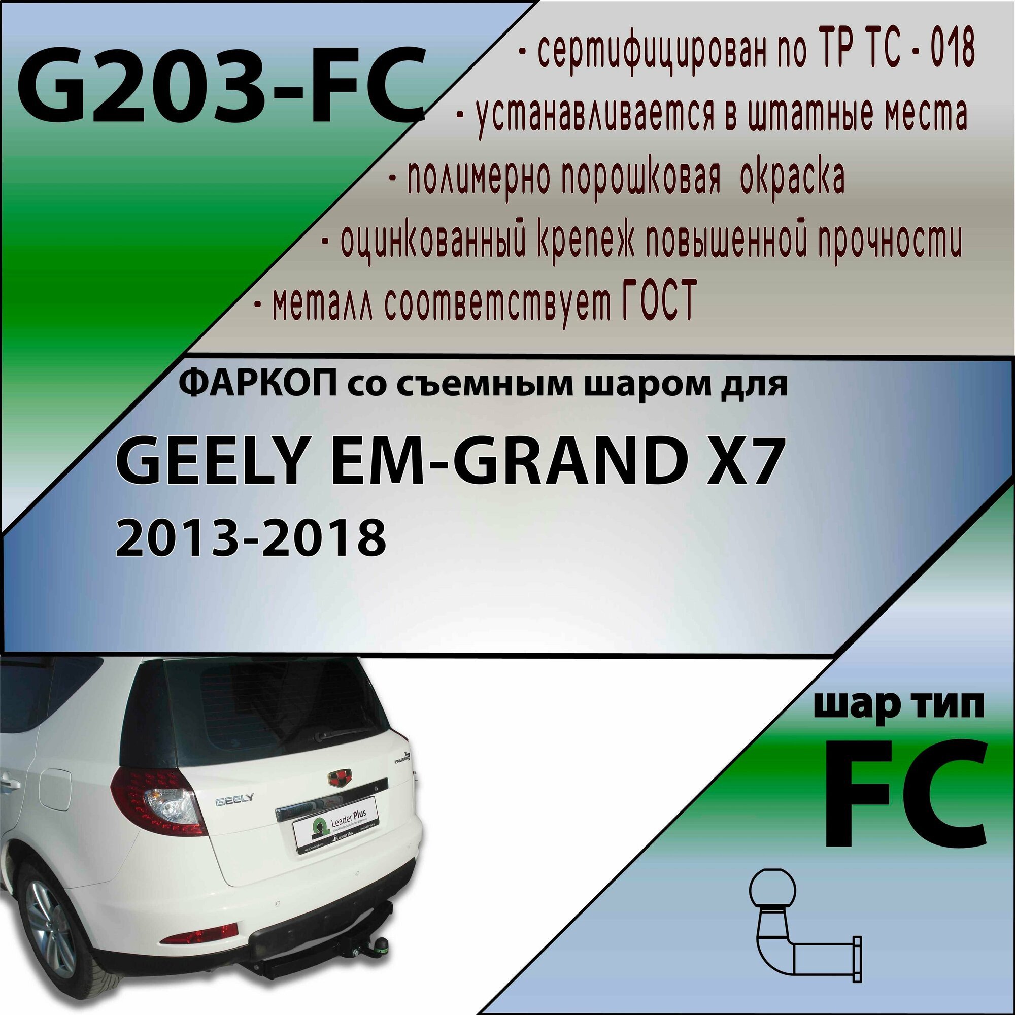 Фаркоп G203-FC Лидер плюс для GEELY EM-GRAND X7 2013-2018 FC (без электрики) информация: