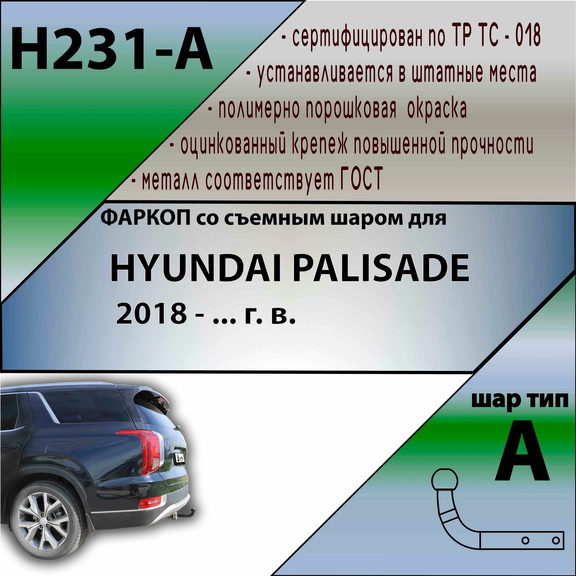 Фаркоп Лидер плюс H231-A для HYUNDAI PALISADE 2018 - н. в. (без электрики) информация: