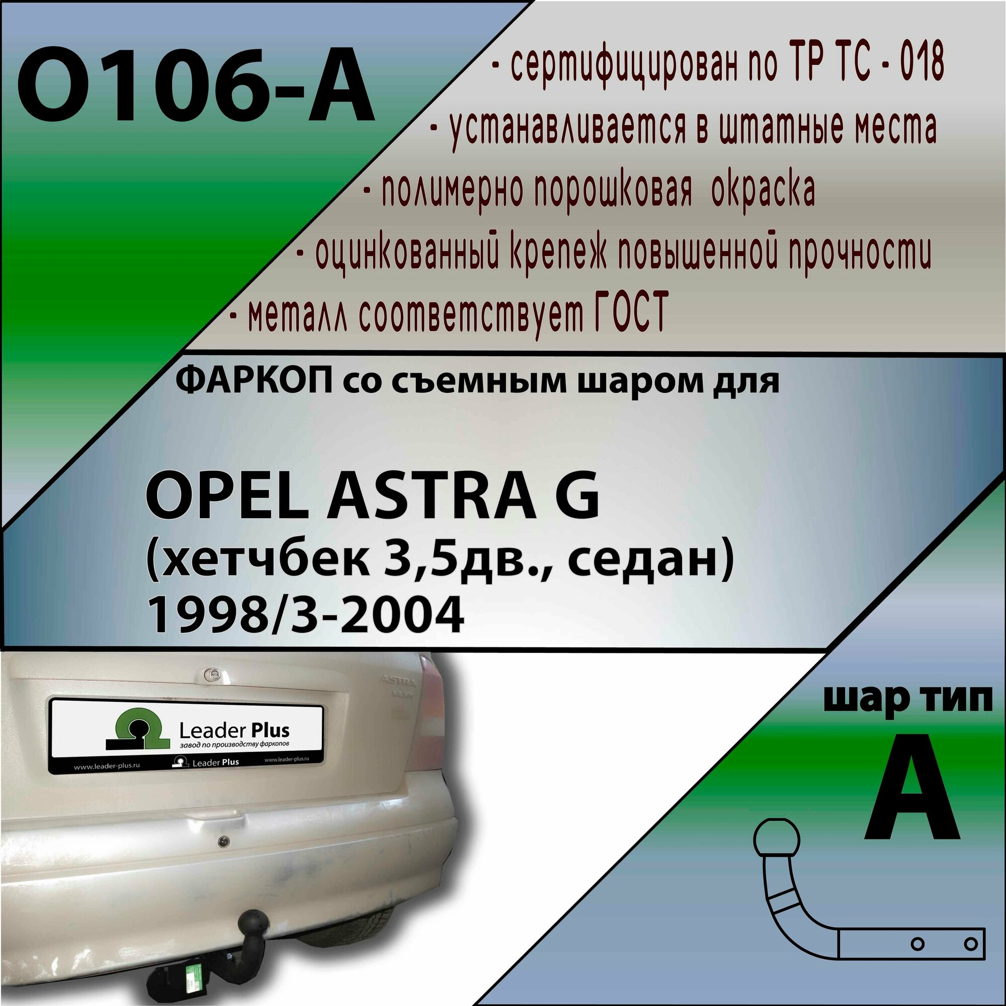 Отзывы на Фаркоп O106-A Лидер плюс для OPEL ASTRA G (хетчбек 3,5дв, седан) 1998/3 (без электрики)