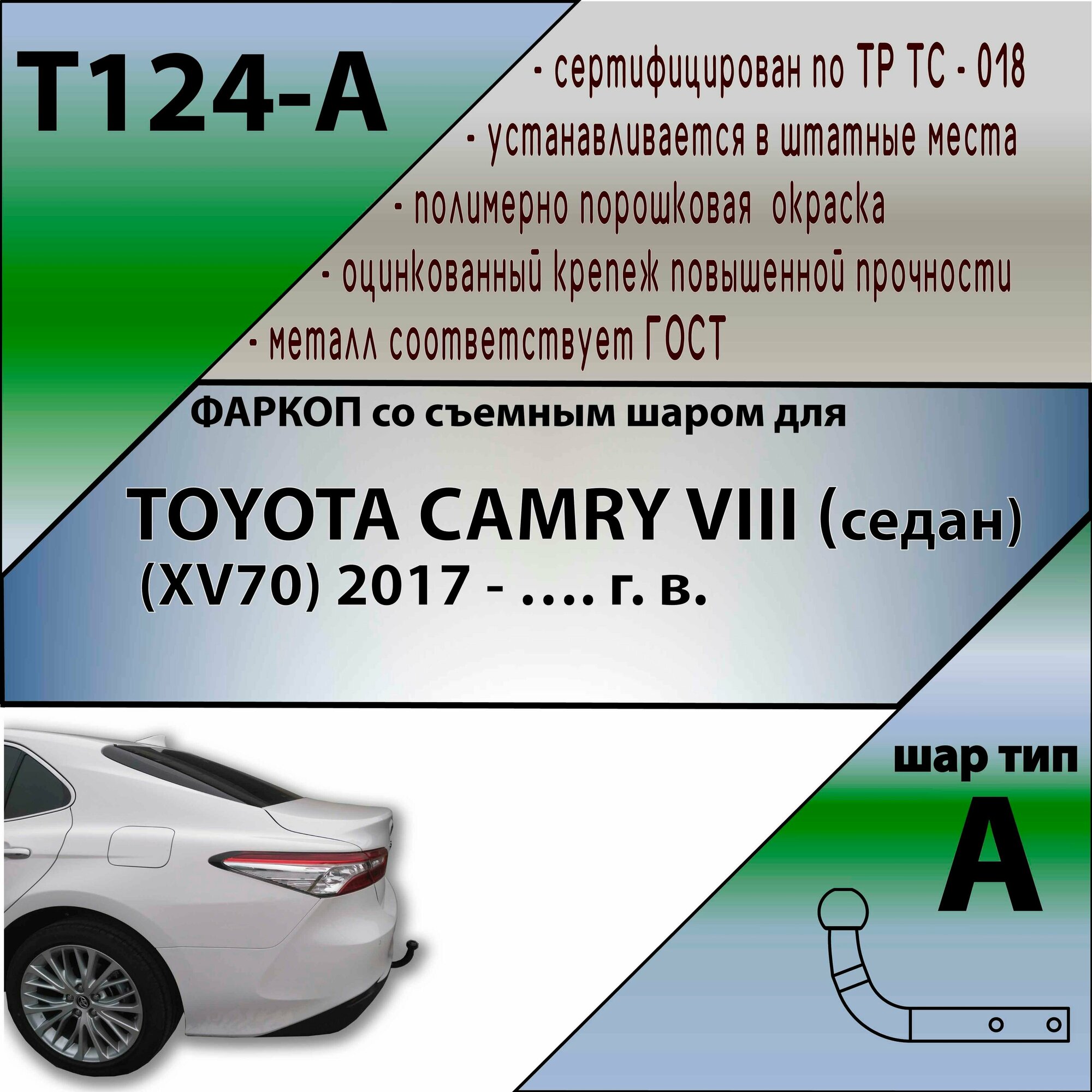 Фаркоп T124-A Лидер плюс для TOYOTA CAMRY VIII (седан) (ХV70) 2017- г. в. (без электрики) информация: