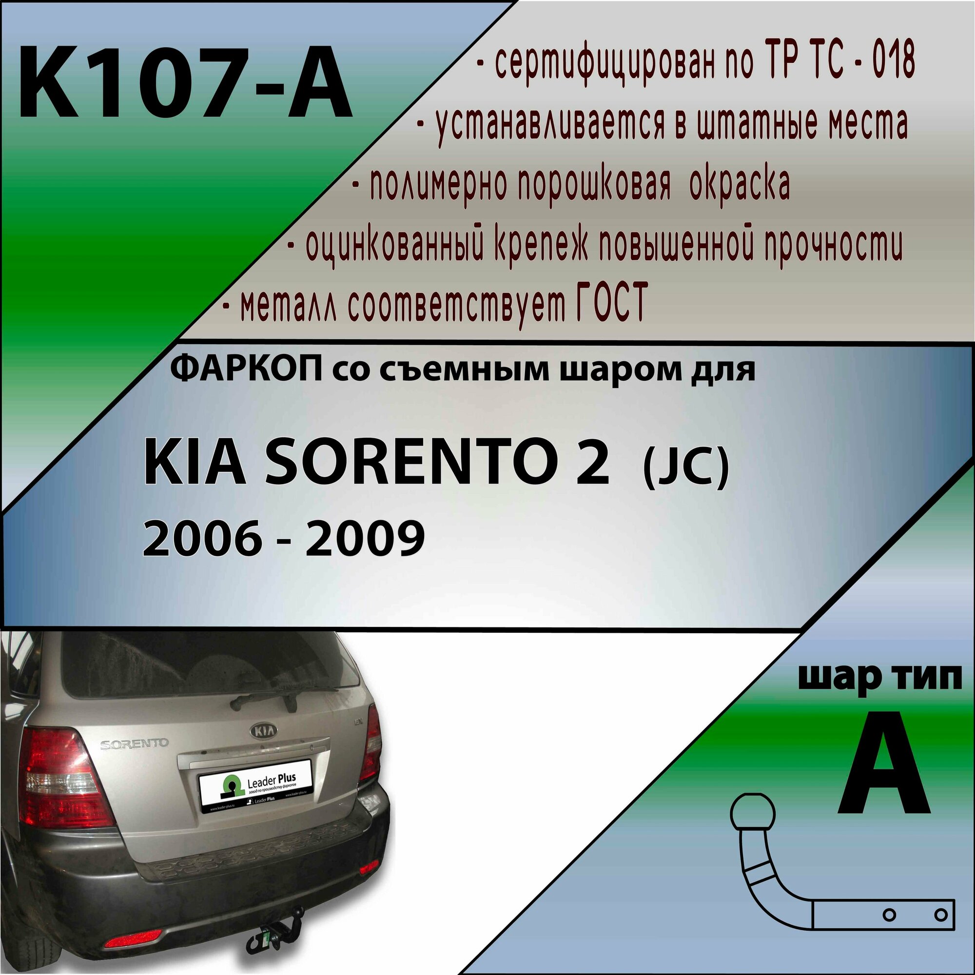 10 цен на Фаркоп K107-A Лидер плюс для KIA SORENTO 2 (JC) 2006 - 2009 (без электрики)