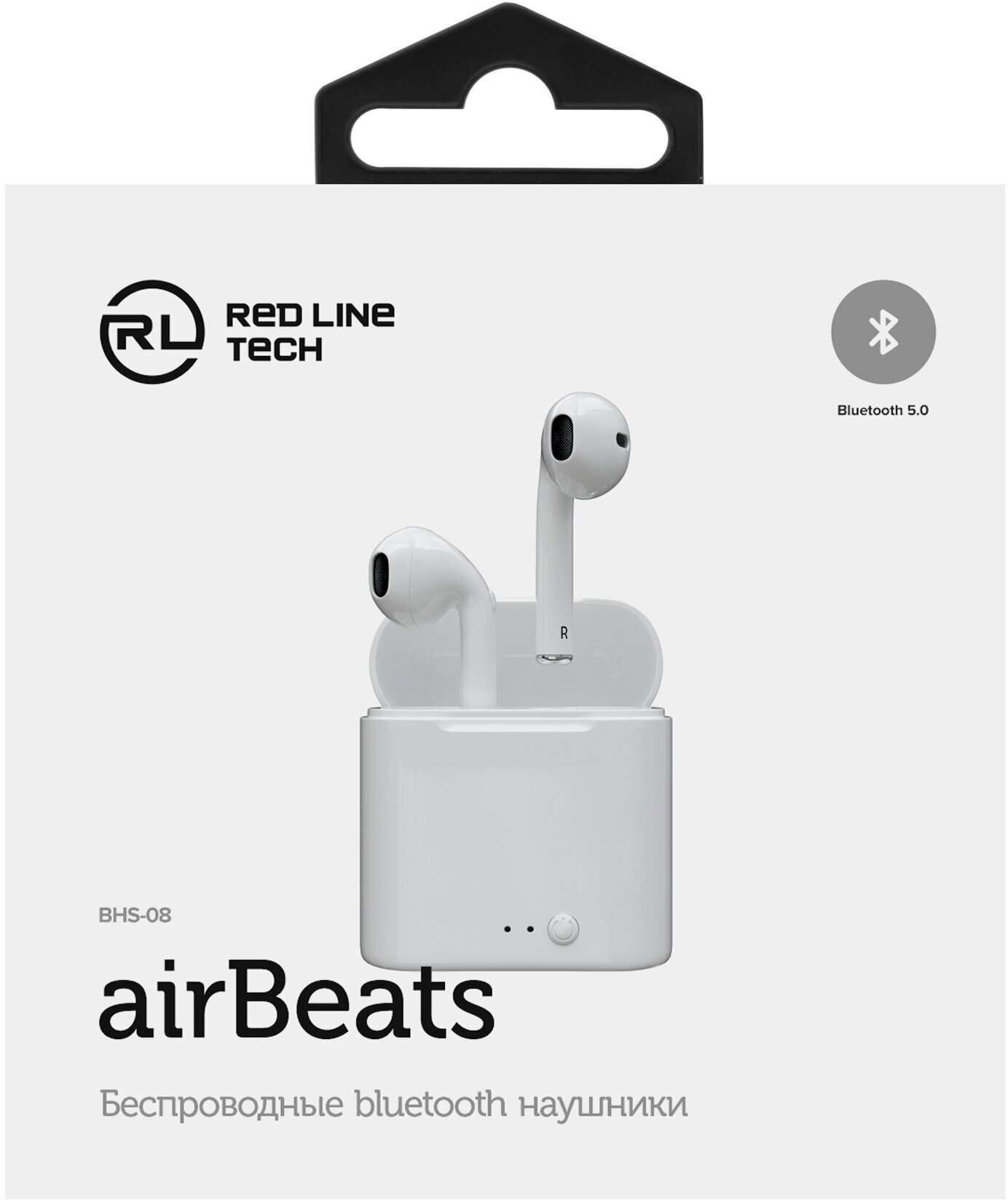Наушники и гарнитуры Red Line Наушники Red Line BHS - 08, беспроводные, вкладыши, микрофон, BT 4.2, 35/200 мАч, белые 1 150 ₽
