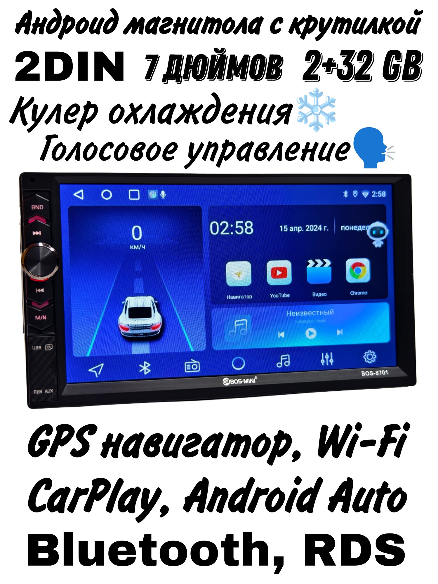 Андроид Магнитола 2 DIN 7 дюймов 2+32 GB с кулером охлаждения, голосовое управлением, GPS, IPS, RDS, Wi-Fi информация: