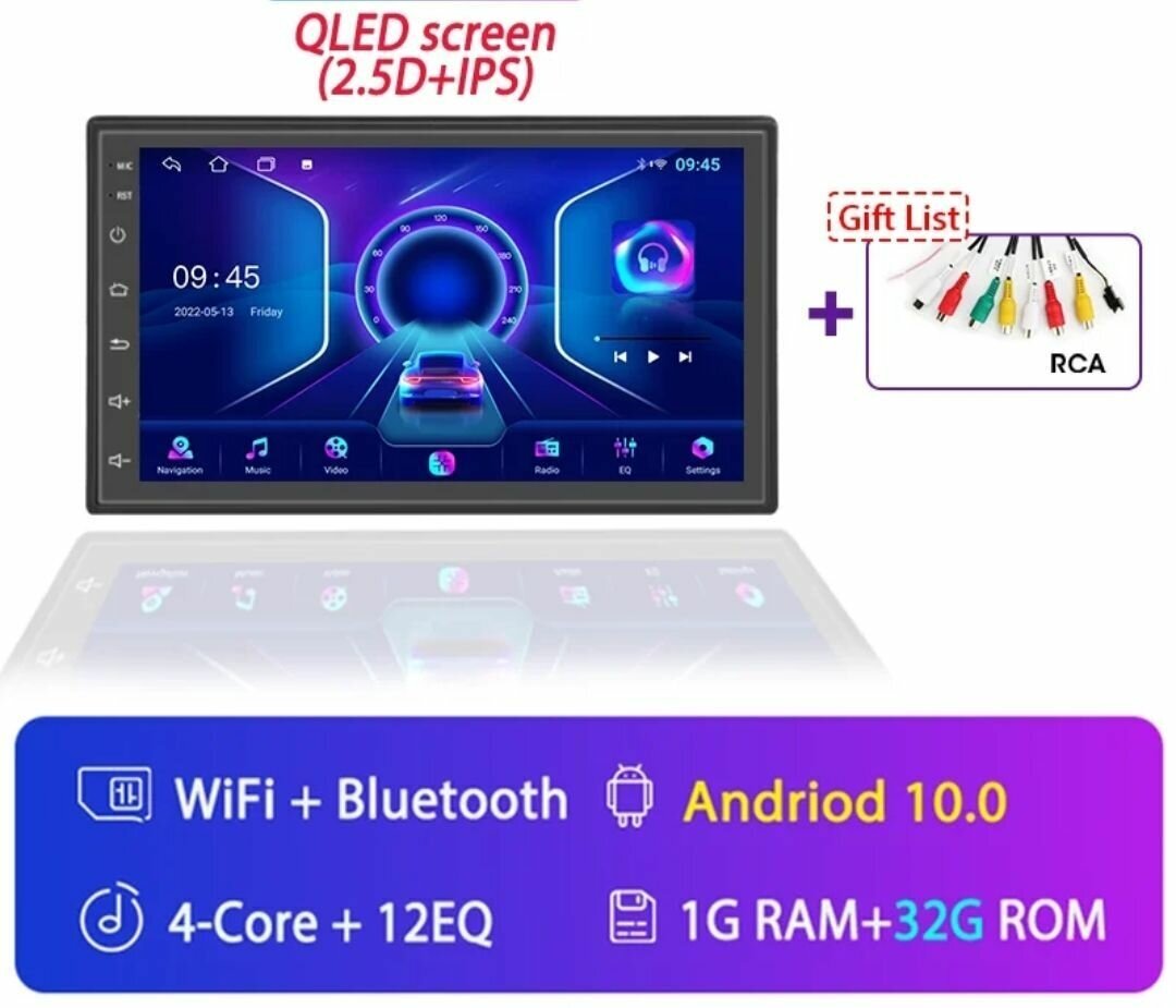 Магнитола для автомобиля с экраном /2+32/8ядер/9дюймов 2din android, 2DIN, 9", поддержка 4G, SIM, Wi-Fi