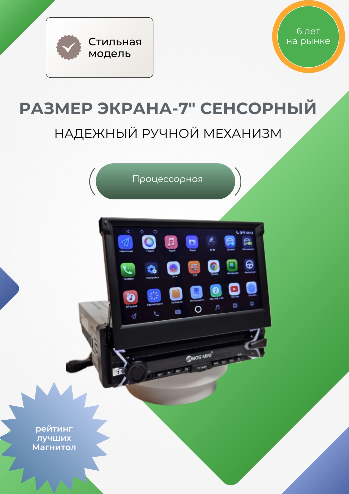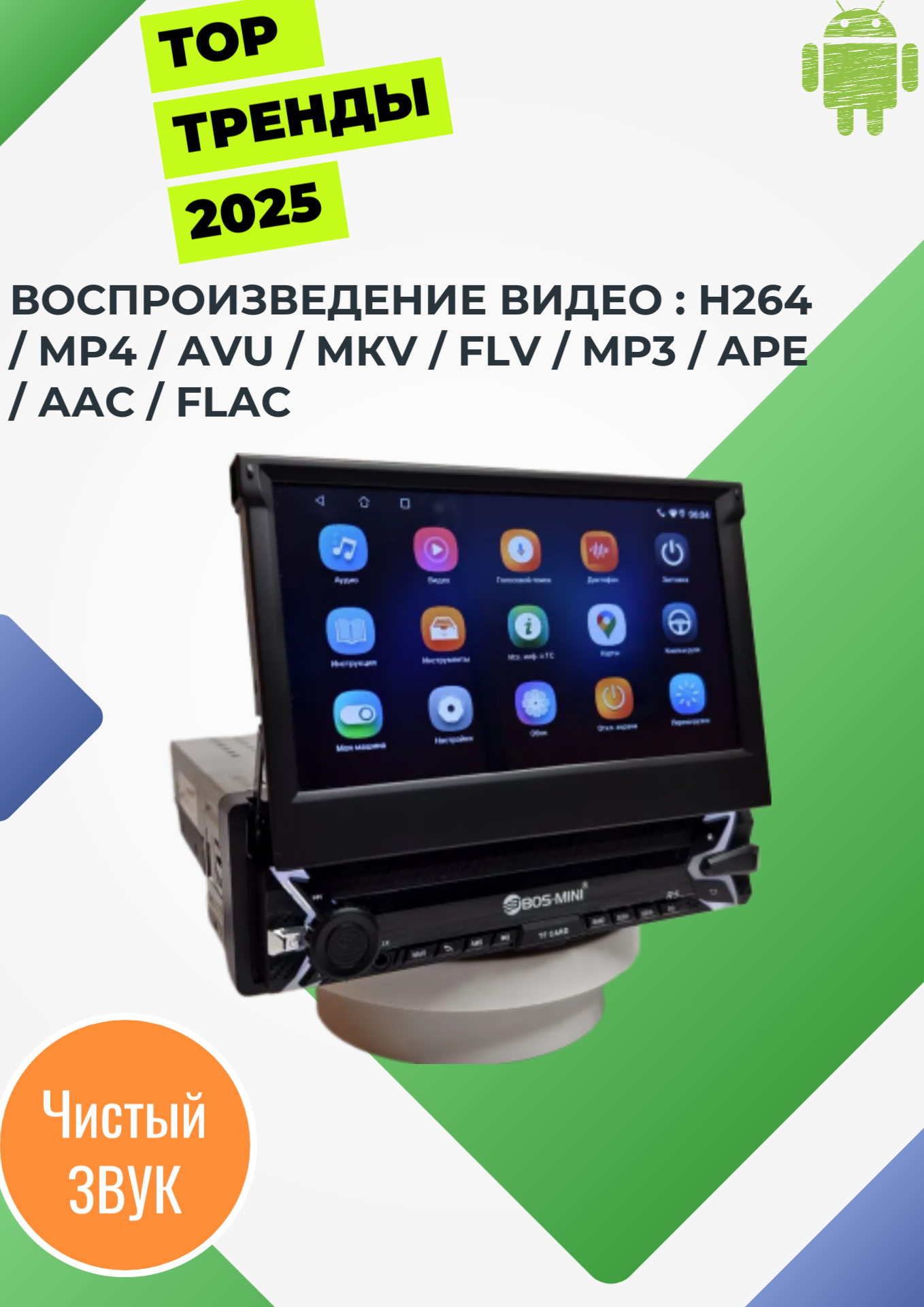 Автомагнитола 1DIN 4/64ГБ с выдвижным сенсорным экраном 7 дюймов / на Android / wi-fi /DSP/ gps / магнитола на авто информация: