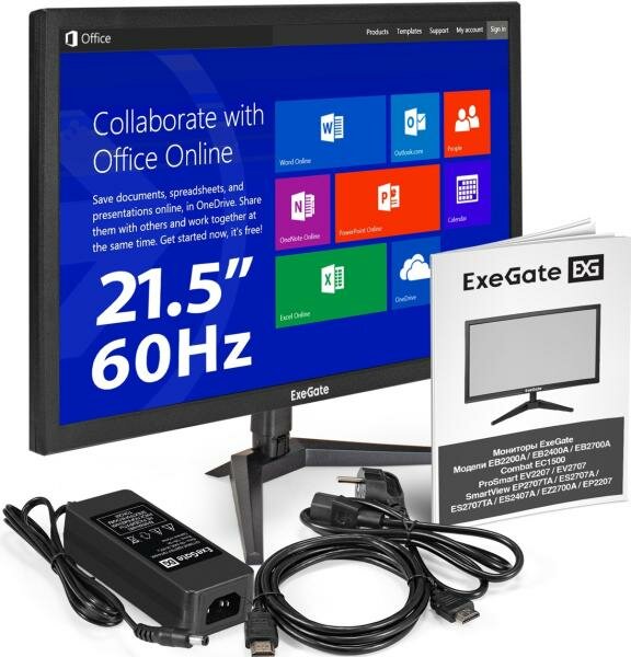 Отзывы на Монитор 21.5 ExeGate EB2200A (VA LED Grade A+, FHD, 1920x1080@75Гц, 16:9, 200cd/m2, 3000:1, 178°/178°, 5ms, D-Sub, HDMI, Flicker-free, Low Blue Light,